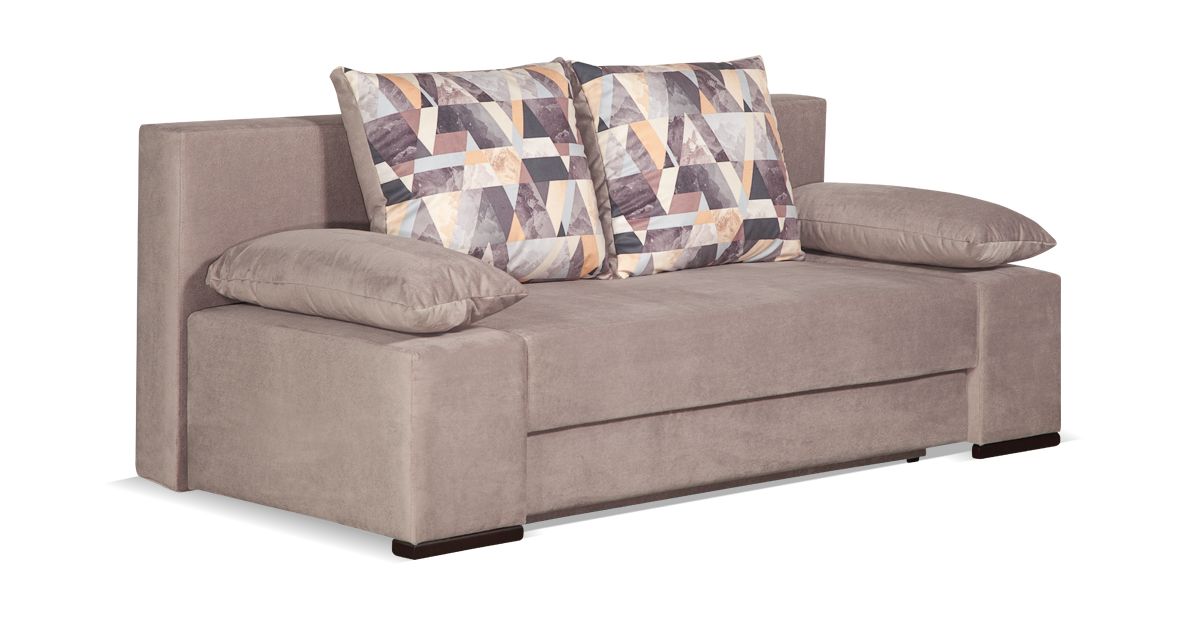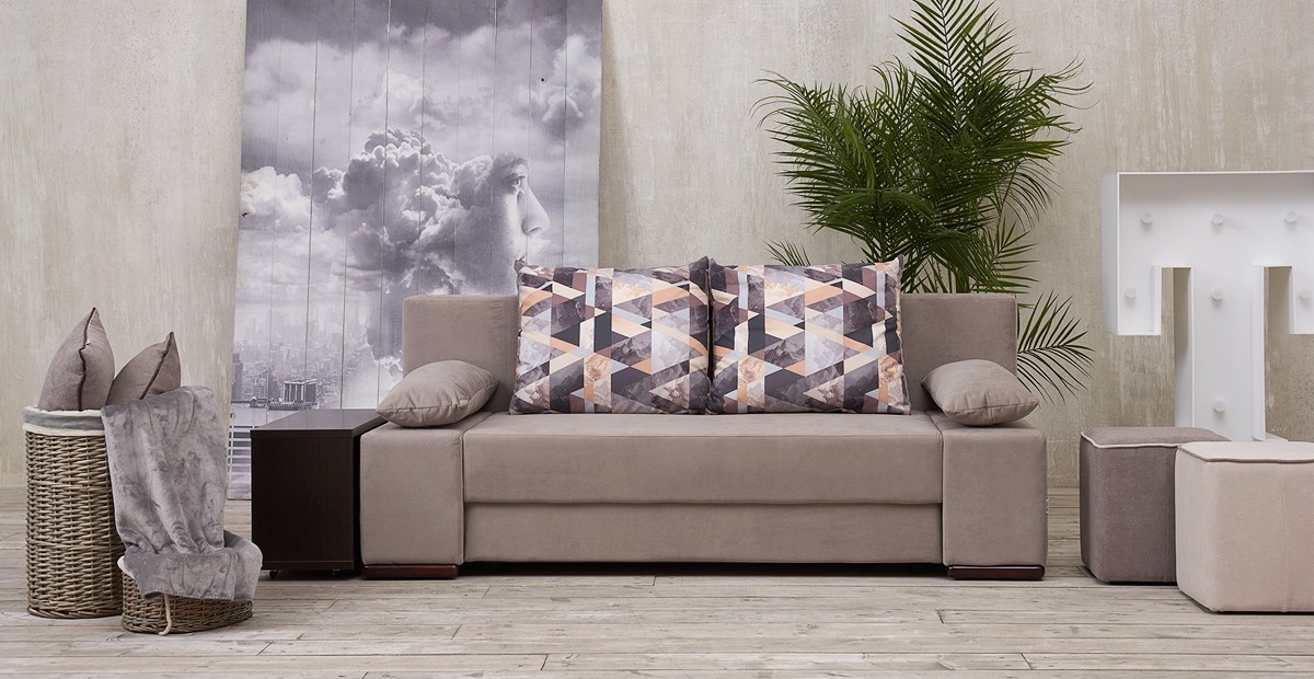 Удобный современный диван. Подушки комфортно поддерживают спину при посадке, спальное место большое и ровное. Акцент в дизайне сделан именно на подушках, которые гармонируют с общим фоном дивана, делая его наиболее привлекательным.