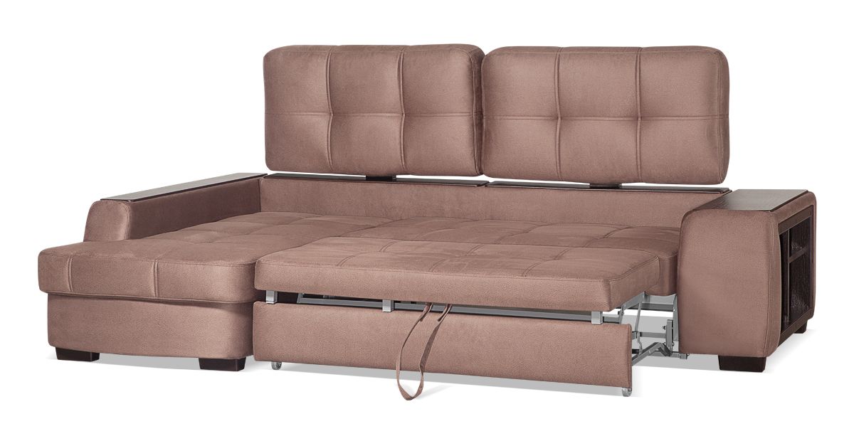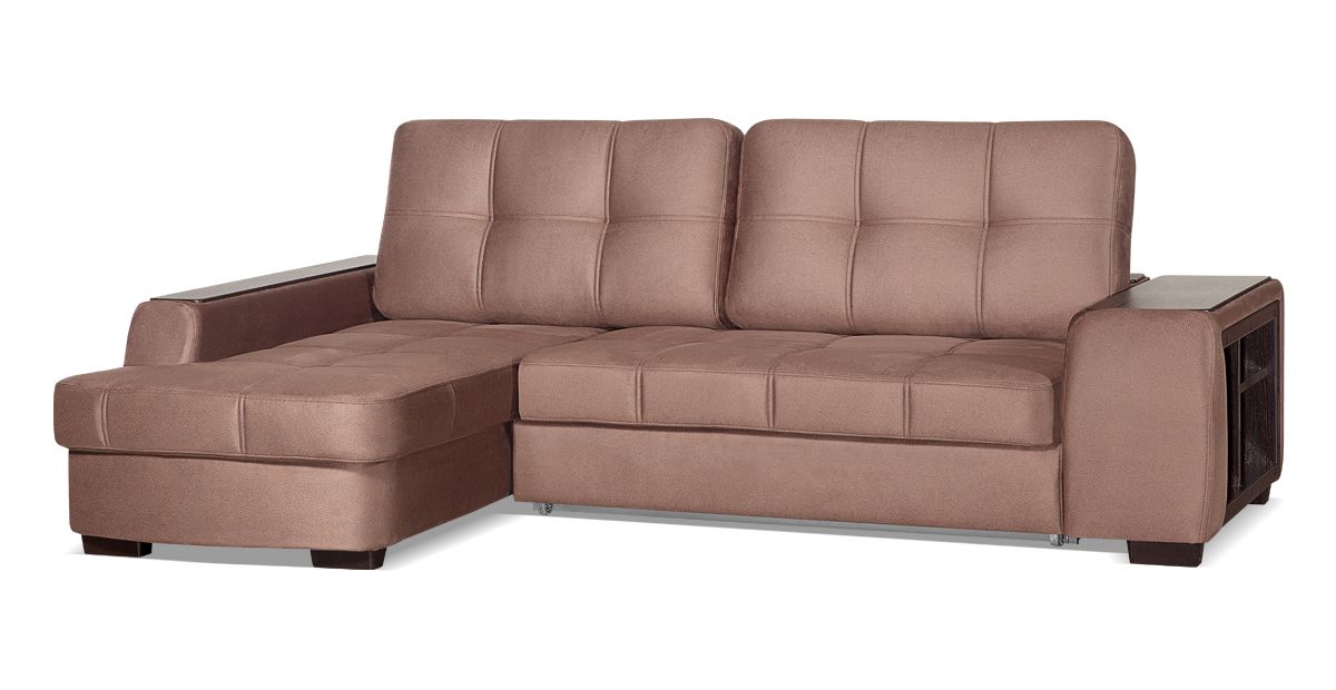 Стильный угловой диван Брюссель выполнен на металлическом каркасе NEXT, который обеспечивает надежность и долговечность. Главная фишка этой модели — «умные» подушки, которые с помощью подъемного механизма поднимаются вровень со спинкой дивана. Это позволяет сделать спальное место шире и не думать о том, куда деть подушки на ночь.