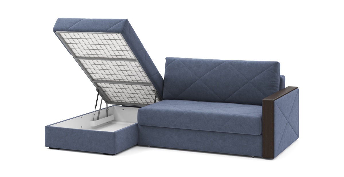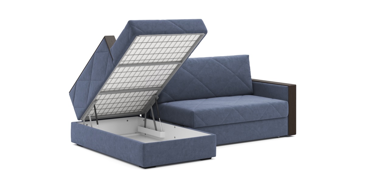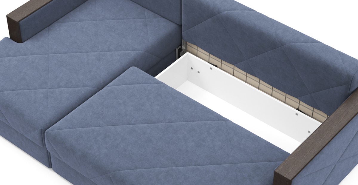 Стильный угловой диван Мюнхен на металлической платформе NEXT – сочетание элегантности и функциональности. Стежка на сидении и спинке не позволит образовываться складкам на обивке, а чехлы на подушках можно снять, чтобы постирать при необходимости. Во вместительном бельевом ящике под сидением можно хранить спальные принадлежности. Кроме этого, любители пить на диване чай или кофе по достоинству оценят широкие подлокотники с деревянными накладками.