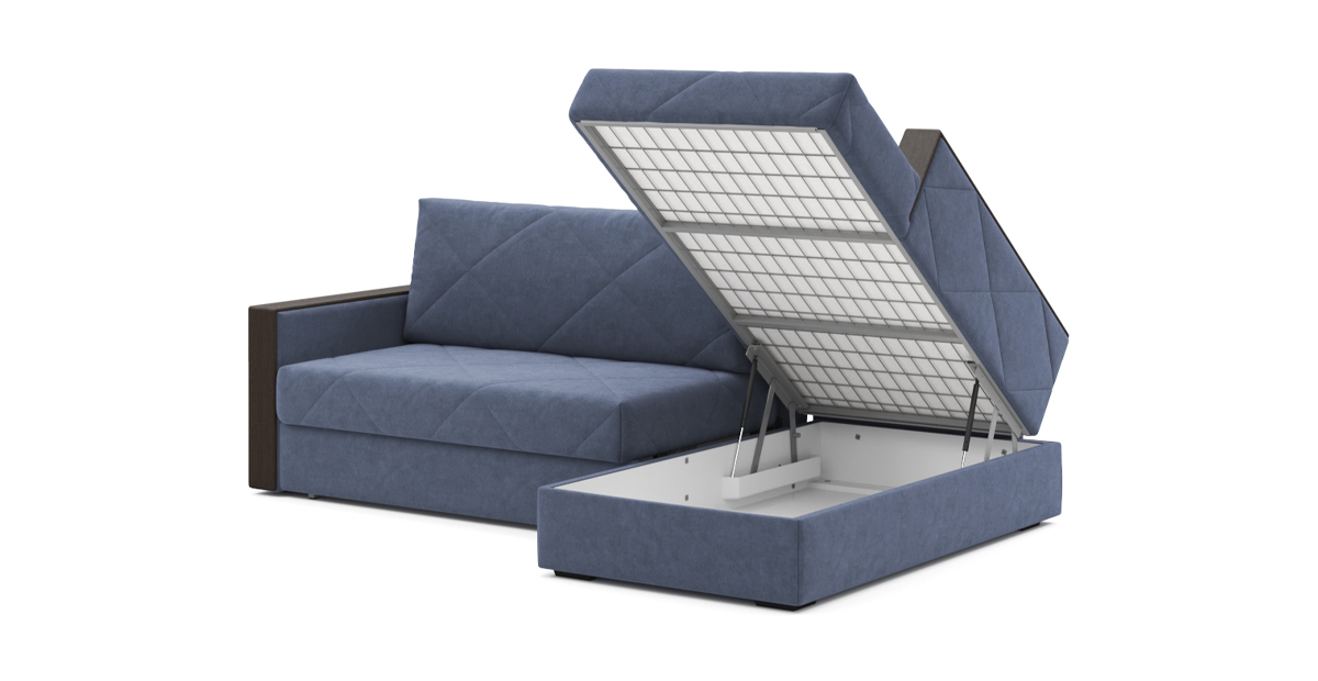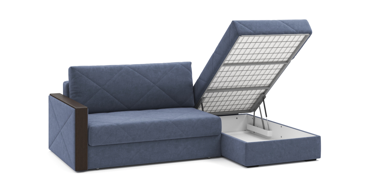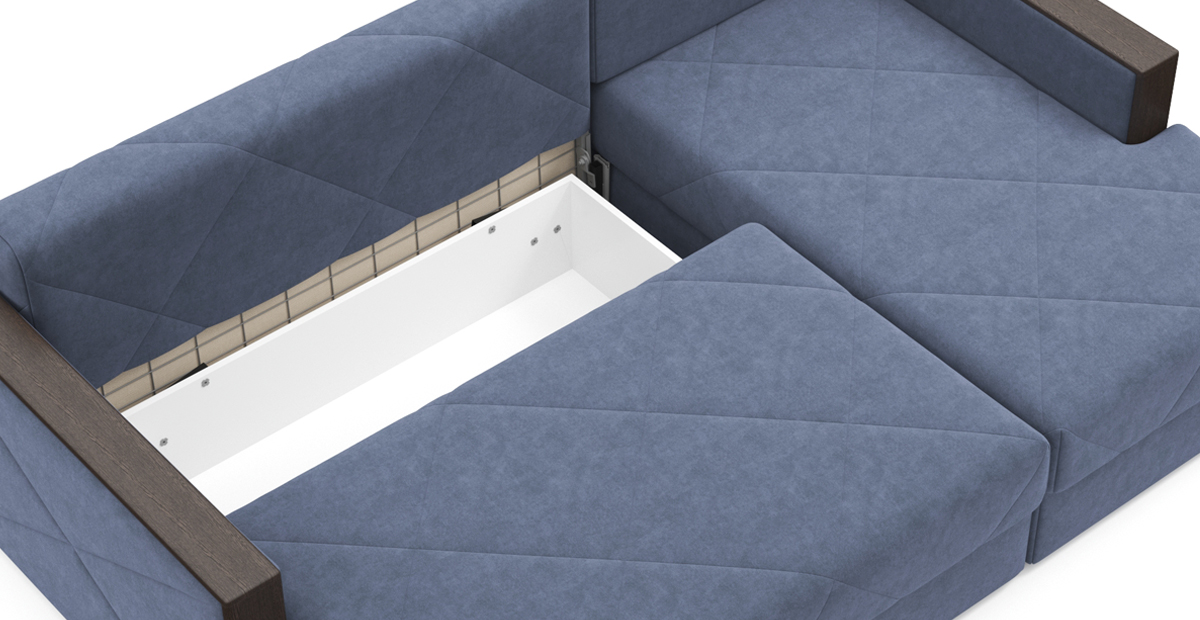Стильный угловой диван Мюнхен на металлической платформе NEXT – сочетание элегантности и функциональности. Стежка на сидении и спинке не позволит образовываться складкам на обивке, а чехлы на подушках можно снять, чтобы постирать при необходимости. Во вместительном бельевом ящике под сидением можно хранить спальные принадлежности. Кроме этого, любители пить на диване чай или кофе по достоинству оценят широкие подлокотники с деревянными накладками.
