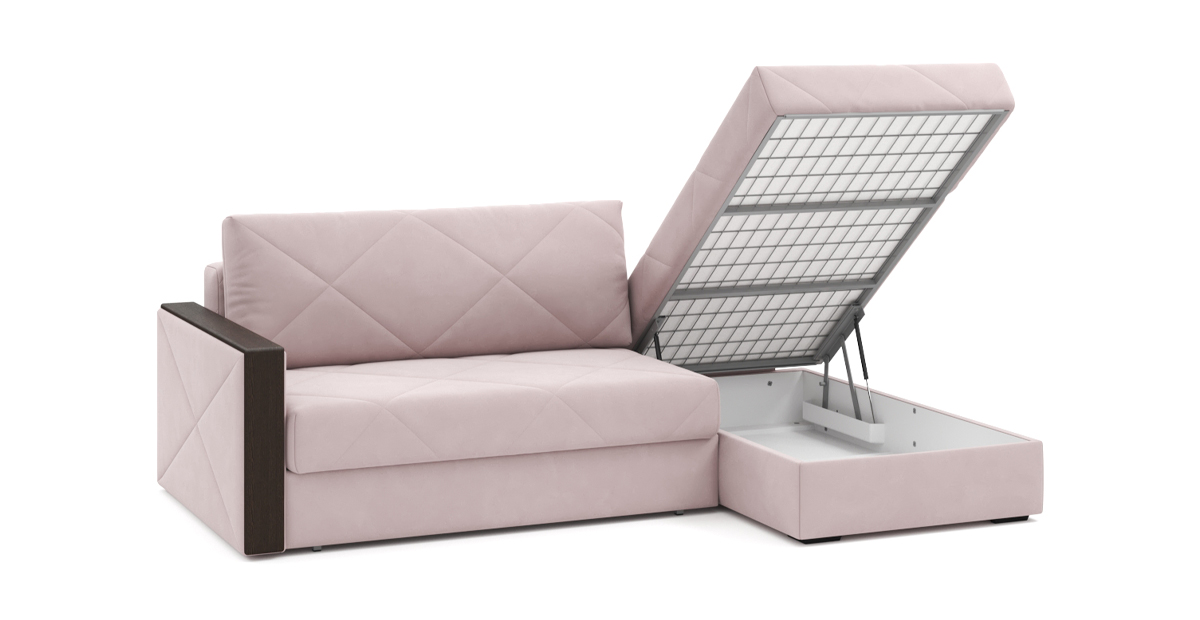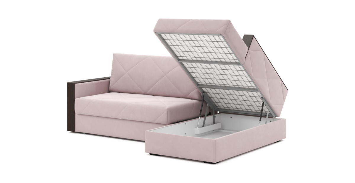 Стильный угловой диван Мюнхен на металлической платформе NEXT – сочетание элегантности и функциональности. Стежка на сидении и спинке не позволит образовываться складкам на обивке, а чехлы на подушках можно снять, чтобы постирать при необходимости. Во вместительном бельевом ящике под сидением можно хранить спальные принадлежности. Кроме этого, любители пить на диване чай или кофе по достоинству оценят широкие подлокотники с деревянными накладками.