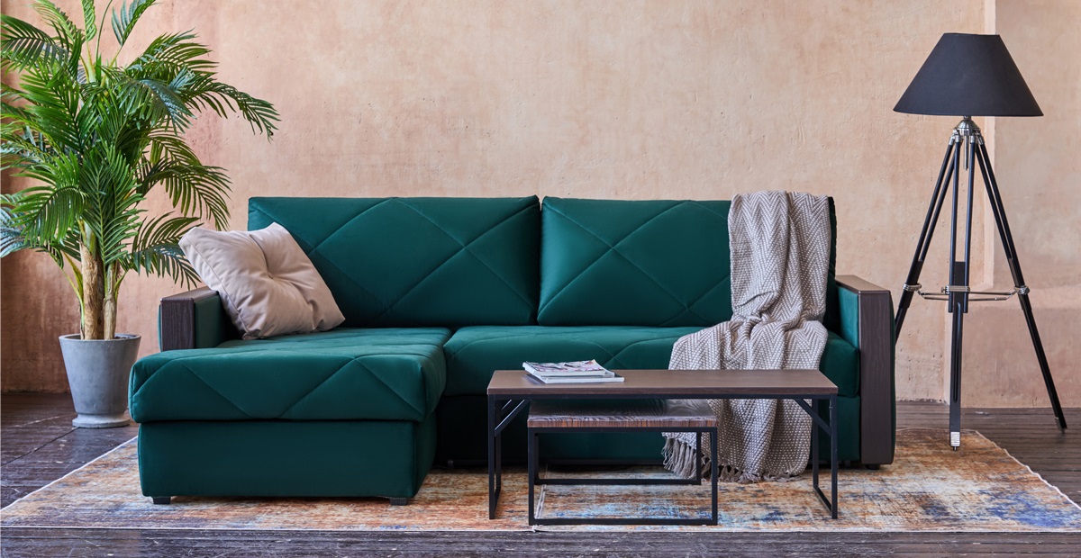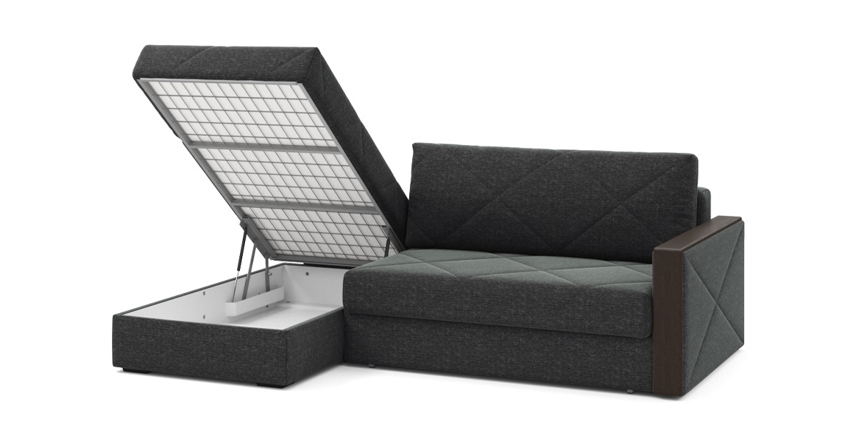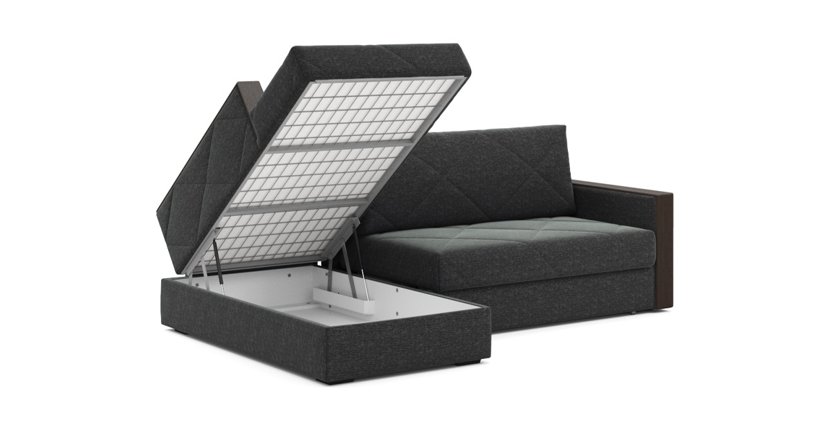 Стильный угловой диван Мюнхен на металлической платформе NEXT – сочетание элегантности и функциональности. Стежка на сидении и спинке не позволит образовываться складкам на обивке, а чехлы на подушках можно снять, чтобы постирать при необходимости. Во вместительном бельевом ящике под сидением можно хранить спальные принадлежности. Кроме этого, любители пить на диване чай или кофе по достоинству оценят широкие подлокотники с деревянными накладками.