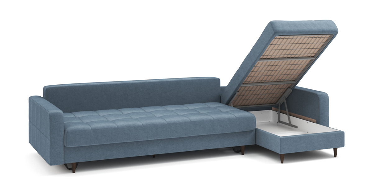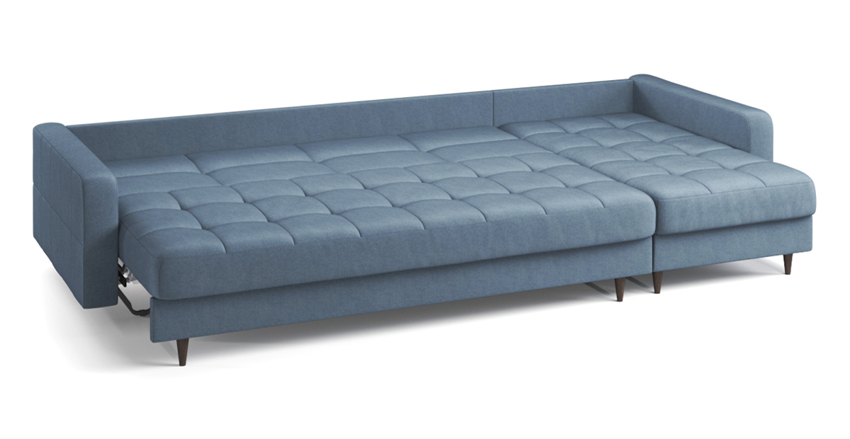 Диван Стокгольм – воплощение скандинавского стиля и привычной нам функциональности. Декоративные опоры визуально облегчают конструкцию и приподнимают ее над полом. При этом внутри дивана есть секция для хранения постельных принадлежностей. Модель оснащена механизмом трансформации, позволяющим разложить диван в просторное спальное место.