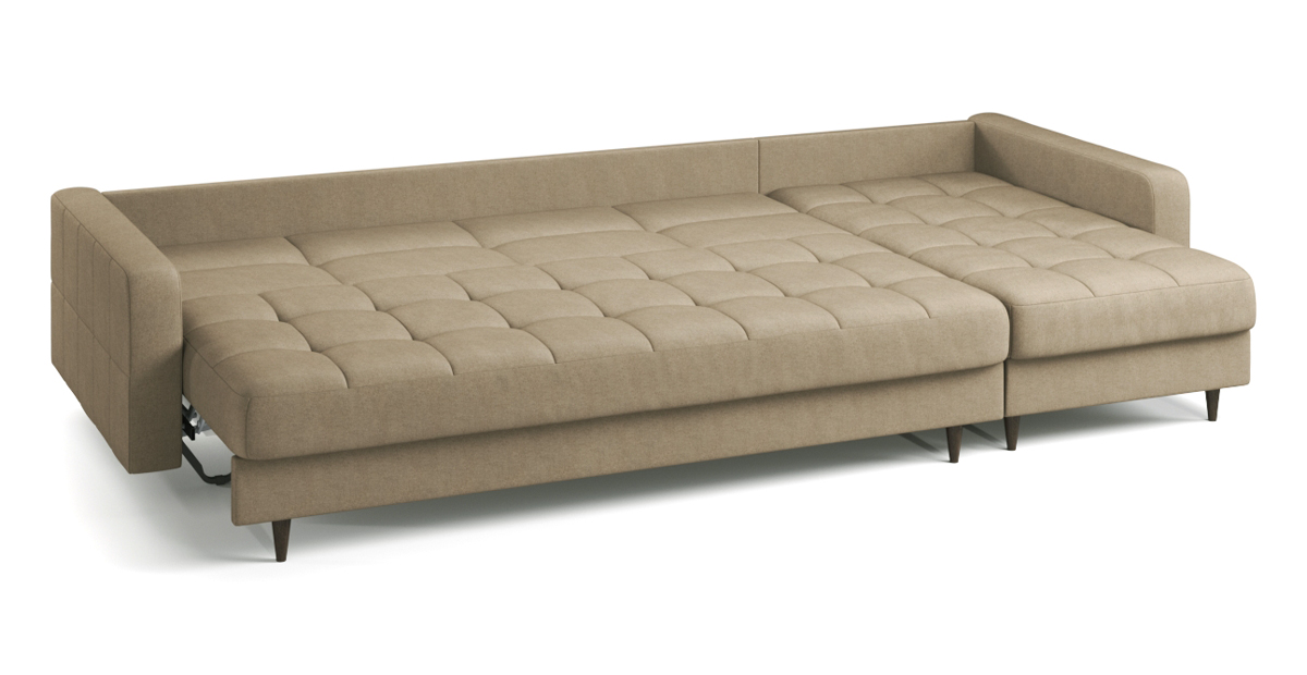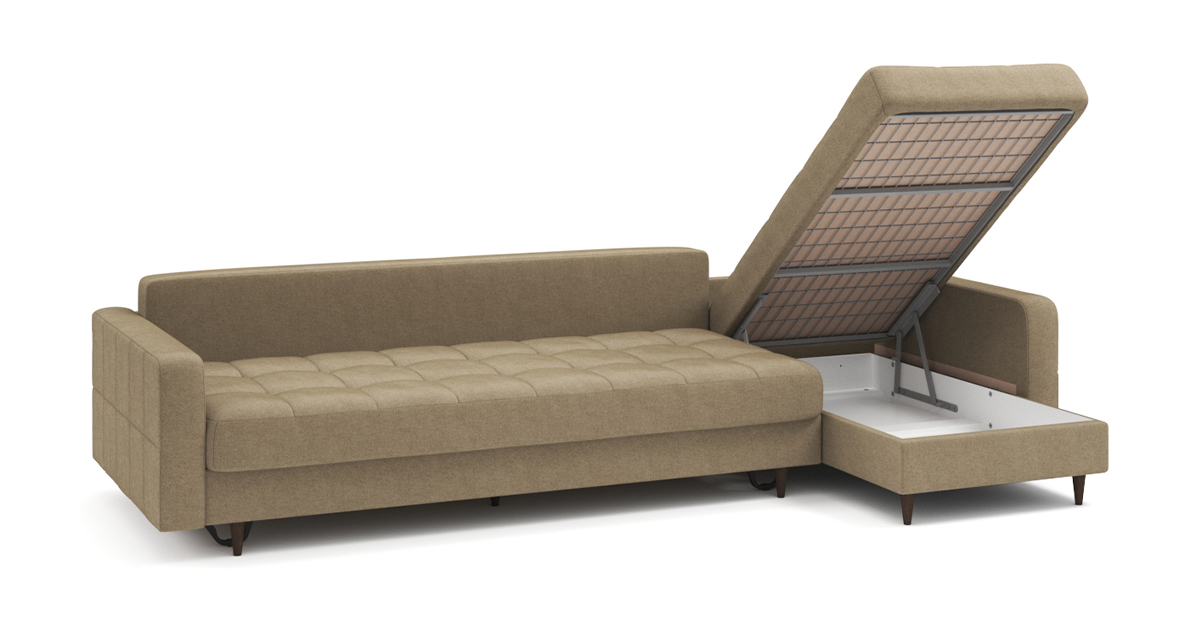 Диван Стокгольм – воплощение скандинавского стиля и привычной нам функциональности. Декоративные опоры визуально облегчают конструкцию и приподнимают ее над полом. При этом внутри дивана есть секция для хранения постельных принадлежностей. Модель оснащена механизмом трансформации, позволяющим разложить диван в просторное спальное место.