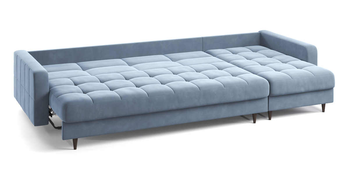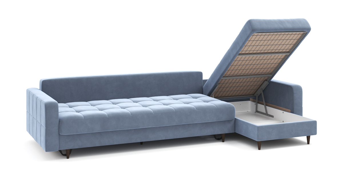 Диван Стокгольм – воплощение скандинавского стиля и привычной нам функциональности. Декоративные опоры визуально облегчают конструкцию и приподнимают ее над полом. При этом внутри дивана есть секция для хранения постельных принадлежностей. Модель оснащена механизмом трансформации, позволяющим разложить диван в просторное спальное место.
