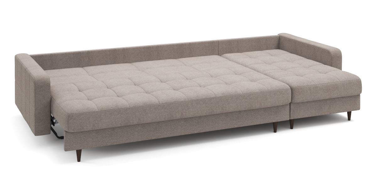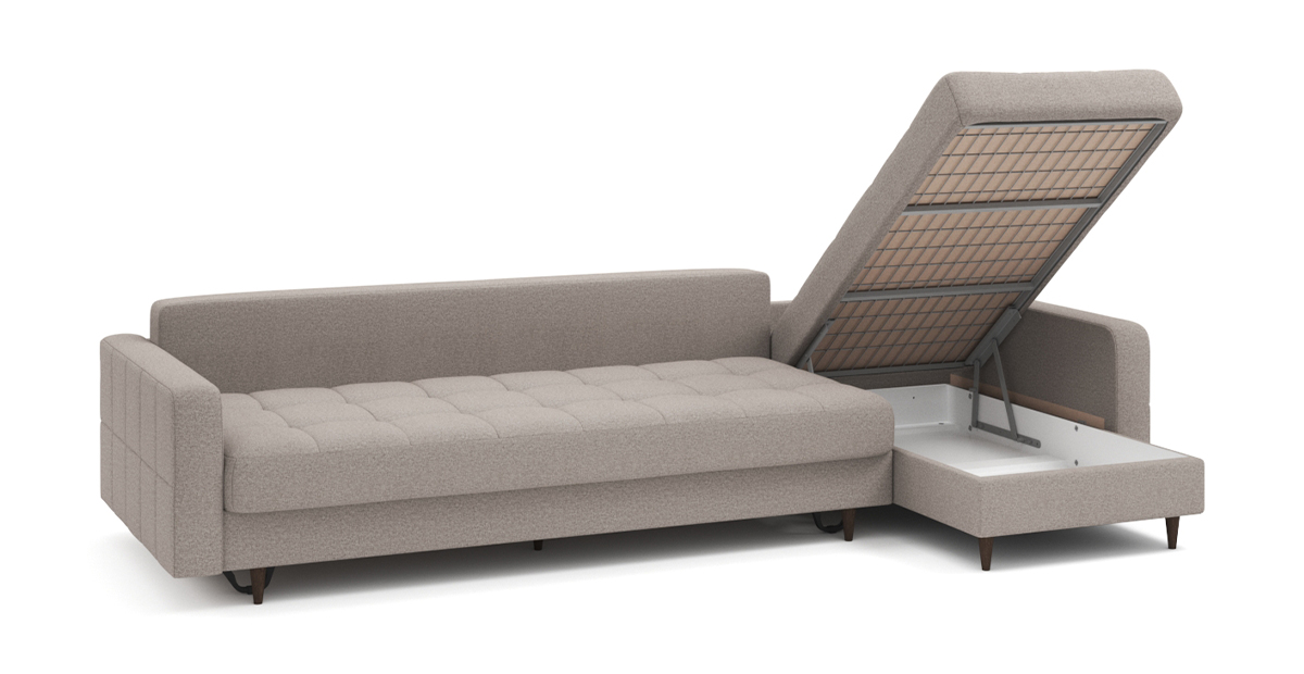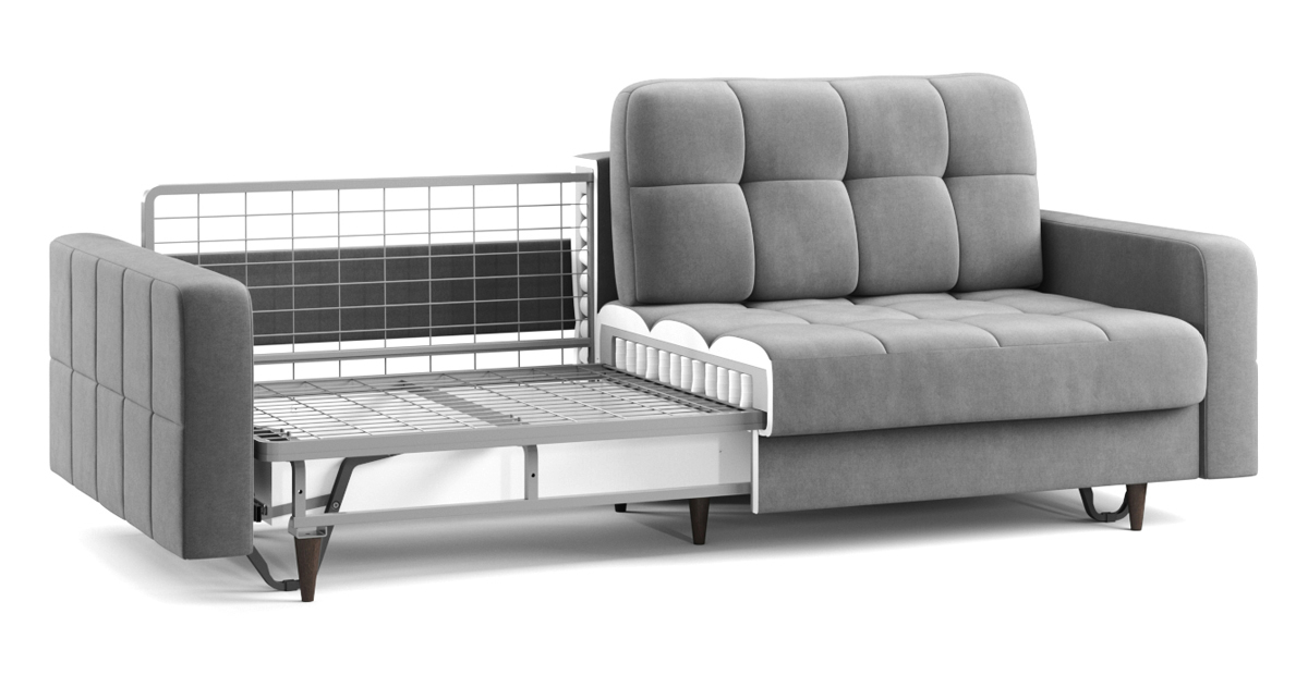 Диван Стокгольм – воплощение скандинавского стиля и привычной нам функциональности. Декоративные опоры визуально облегчают конструкцию и приподнимают ее над полом. При этом внутри дивана есть секция для хранения постельных принадлежностей. Модель оснащена механизмом трансформации, позволяющим разложить диван в просторное спальное место.
