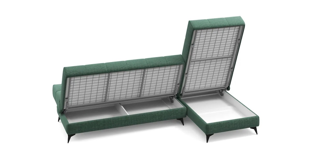 Несмотря на компактные размеры дивана Виго, под его основанием прячется полноценный бельевой ящик. Металлическая платформа дивана надёжна и очень долговечна благодаря легирующим добавкам и дополнительным рёбрам жёсткости в местах максимальной нагрузки. Высокопрочная сварная конструкция под мягким настилом позволяет достигнуть оптимального соотношения упругости и комфорта.
