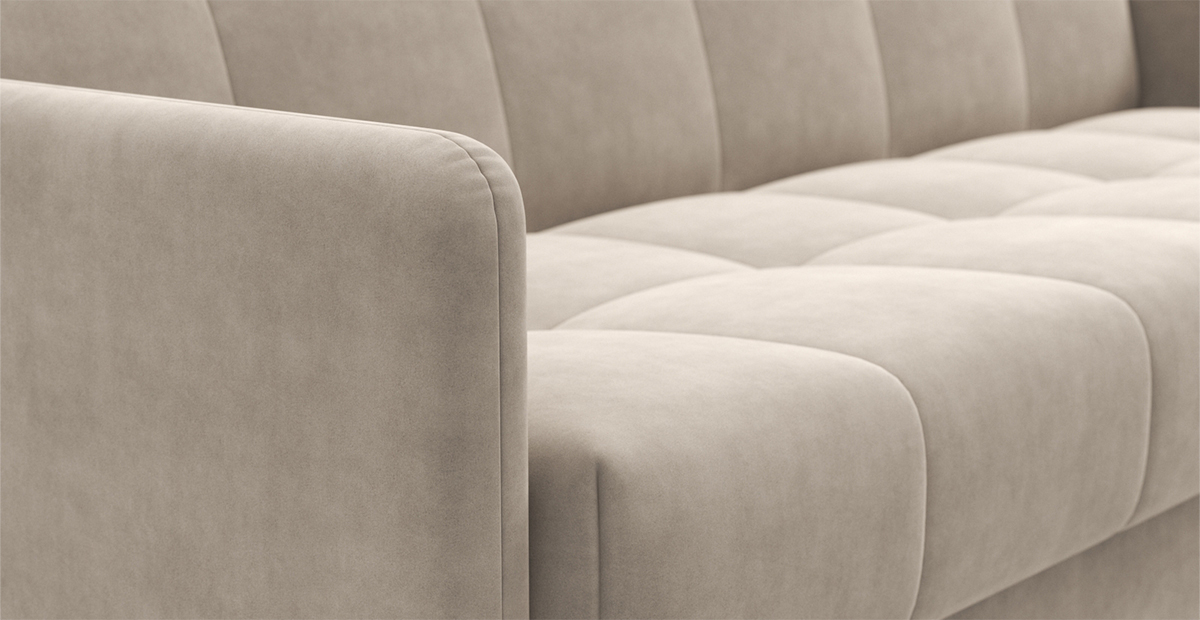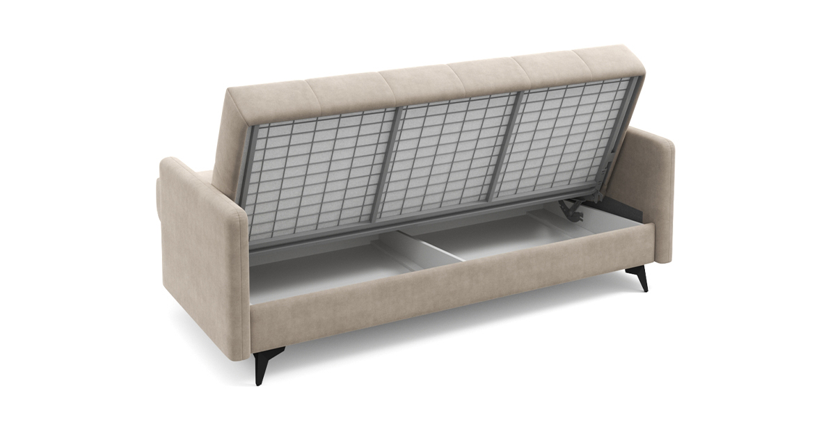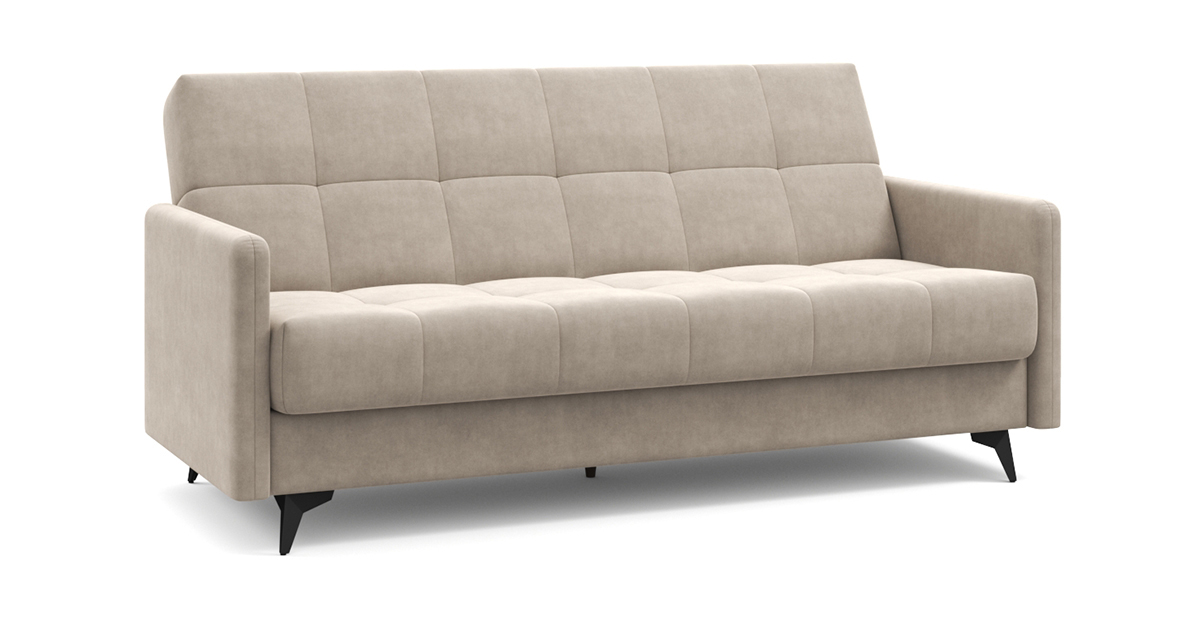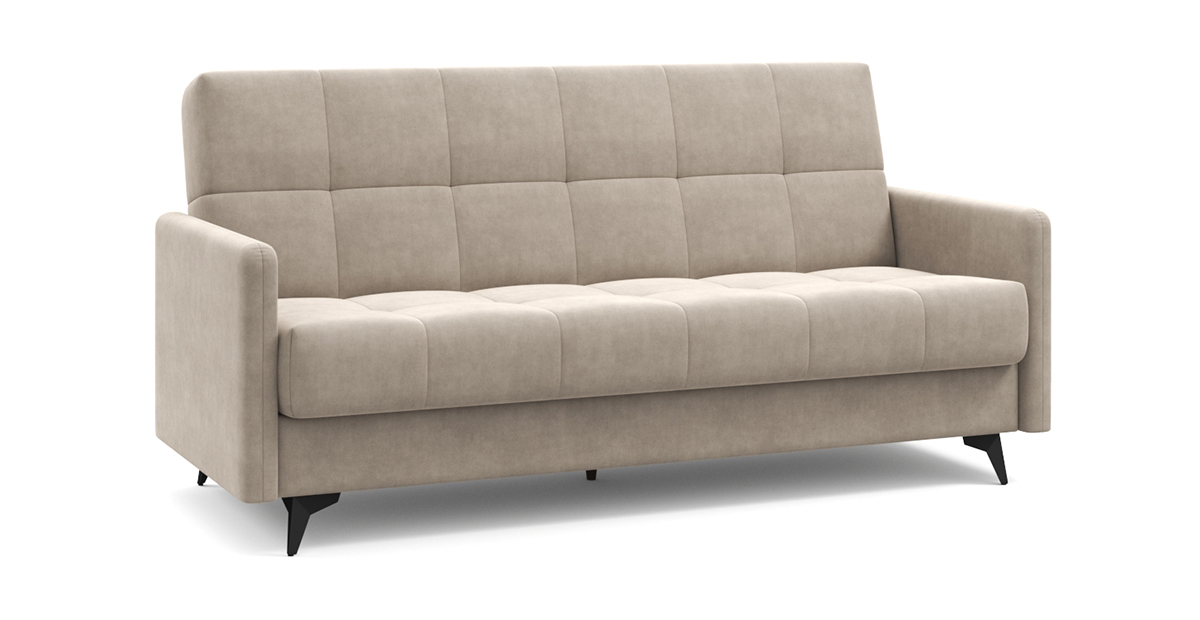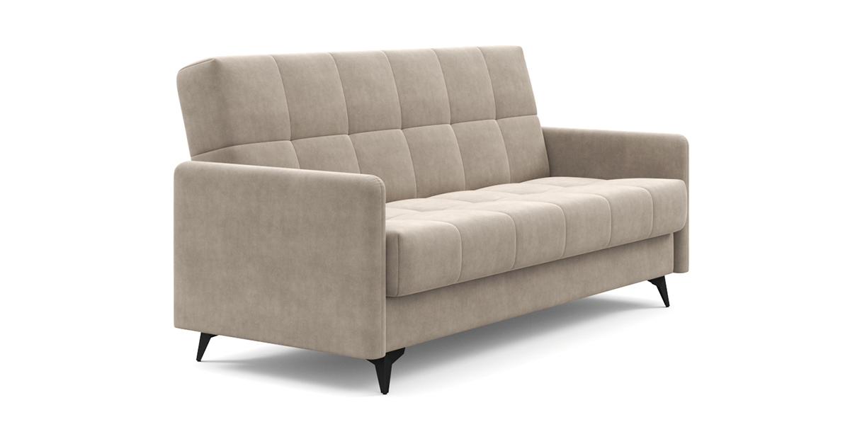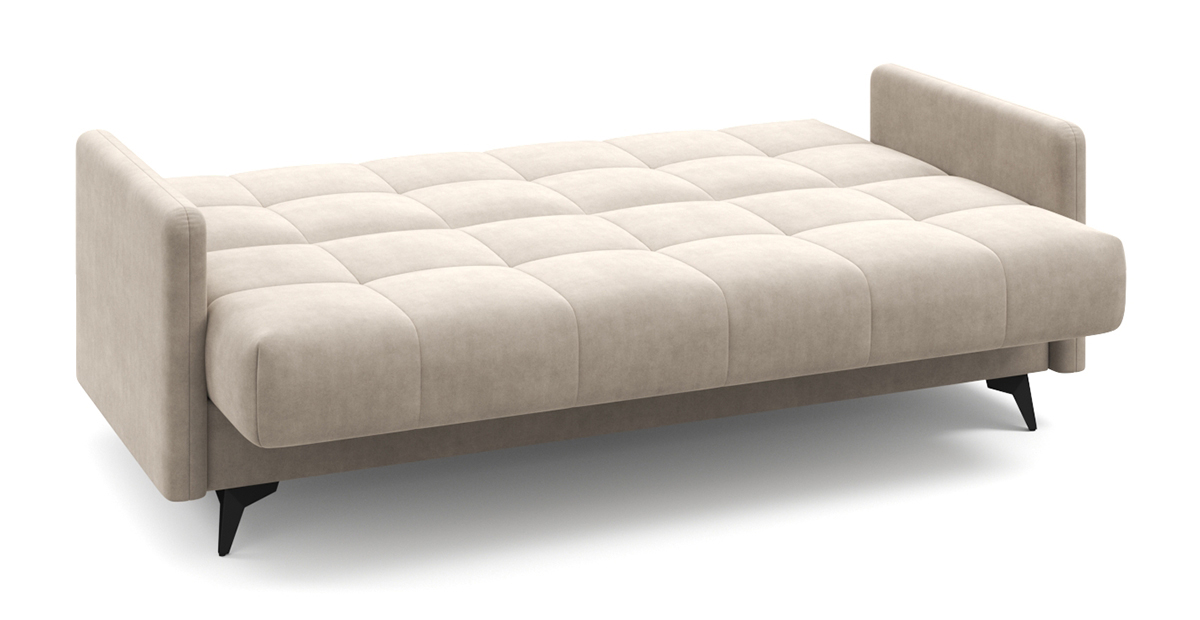 Компактный и стильный диван Уго станет отличным компаньоном любому интерьеру. Благодаря лаконичному дизайну с геометричной стёжкой и модным высоким опорам Уго будет уместно смотреться и дома, и на даче, и где угодно. Высокие ножки не только добавляют образу дивана лёгкости, но и упрощают процесс уборки, в том числе роботом-пылесосом. Три положения трансформации – «диван», «кровать» и «релакс» – сделают любое времяпровождение на диване максимально приятным и удобным. Бесшумный и простой механизм клик-кляк легко раскладывает его в полноценную и ровную кровать – здесь нет ни перепадов высоты, ни щели посередине. Независимый пружинный блок обеспечит качественный отдых и сон. Несмотря на компактные размеры дивана Уго, под его основанием прячется полноценный бельевой ящик. Металлическая платформа дивана надёжна и очень долговечна благодаря легирующим добавкам и дополнительным рёбрам жёсткости в местах максимальной нагрузки. Высокопрочная сварная конструкция под мягким настилом позволяет достигнуть оптимального соотношения упругости и комфорта.