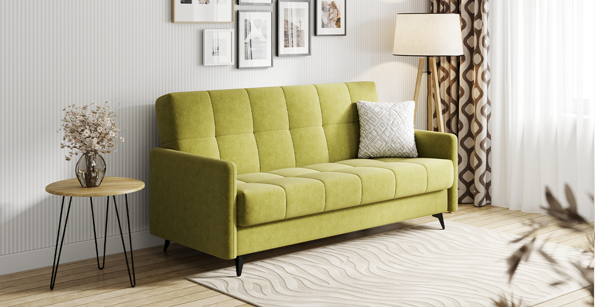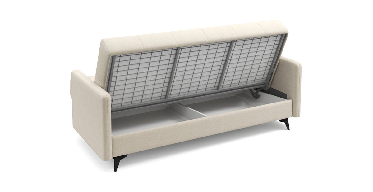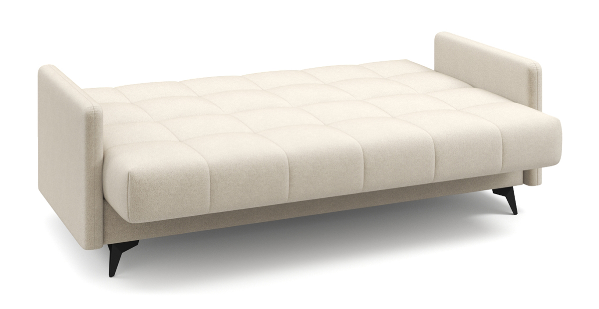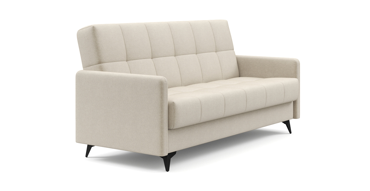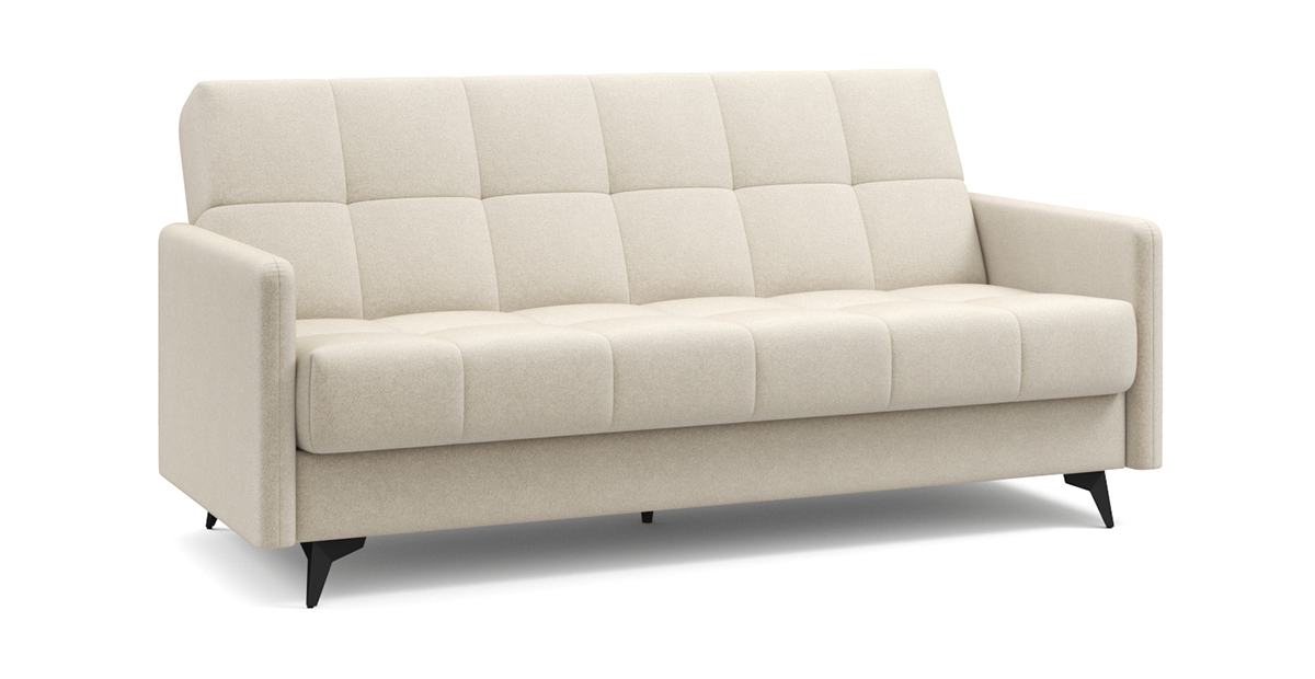 Компактный и стильный диван Уго станет отличным компаньоном любому интерьеру. Благодаря лаконичному дизайну с геометричной стёжкой и модным высоким опорам Уго будет уместно смотреться и дома, и на даче, и где угодно. Высокие ножки не только добавляют образу дивана лёгкости, но и упрощают процесс уборки, в том числе роботом-пылесосом. Три положения трансформации – «диван», «кровать» и «релакс» – сделают любое времяпровождение на диване максимально приятным и удобным. Бесшумный и простой механизм клик-кляк легко раскладывает его в полноценную и ровную кровать – здесь нет ни перепадов высоты, ни щели посередине. Независимый пружинный блок обеспечит качественный отдых и сон. Несмотря на компактные размеры дивана Уго, под его основанием прячется полноценный бельевой ящик. Металлическая платформа дивана надёжна и очень долговечна благодаря легирующим добавкам и дополнительным рёбрам жёсткости в местах максимальной нагрузки. Высокопрочная сварная конструкция под мягким настилом позволяет достигнуть оптимального соотношения упругости и комфорта.