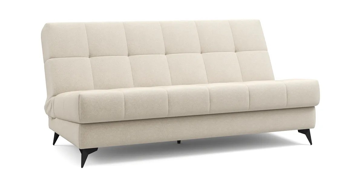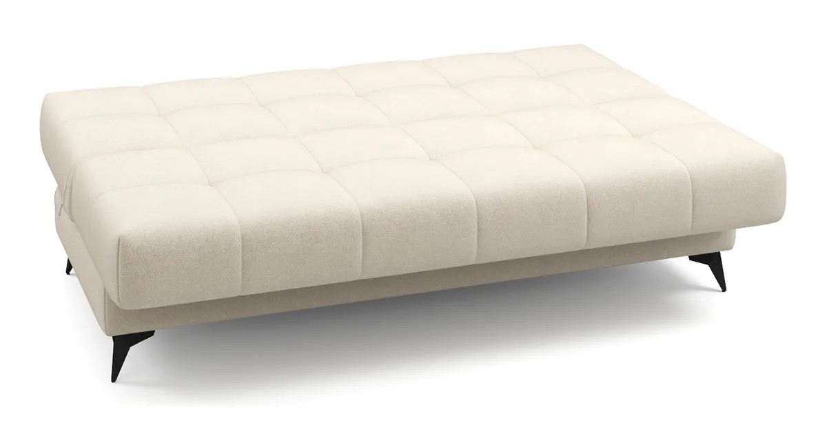 Представленный диван с механизмом Клик-кляк, являющимся усовершенствованной версией механизма Книжка, позволяет легким движением превратить компактный диван в просторное спальное место без зазоров посередине. Особенностью такого механизма является возможность трансформации дивана в три положения – для сидения, отдыха полулежа и сна.