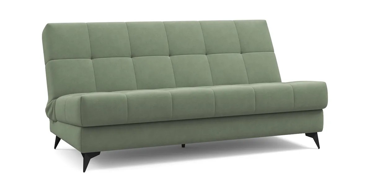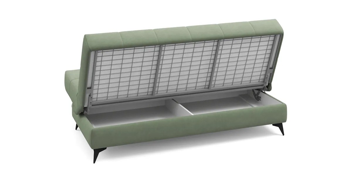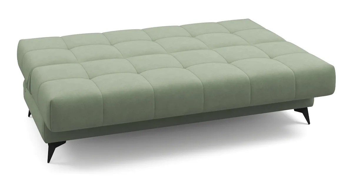 Представленный диван с механизмом Клик-кляк, являющимся усовершенствованной версией механизма Книжка, позволяет легким движением превратить компактный диван в просторное спальное место без зазоров посередине. Особенностью такого механизма является возможность трансформации дивана в три положения – для сидения, отдыха полулежа и сна.