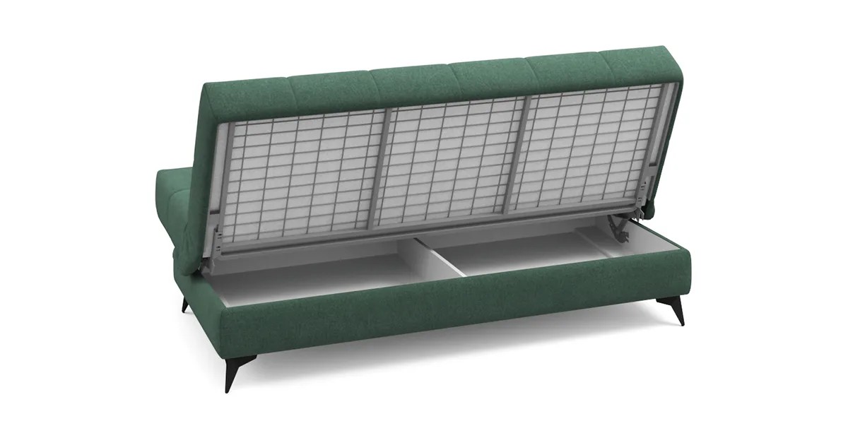 Несмотря на компактные размеры дивана Виго, под его основанием прячется полноценный бельевой ящик. Металлическая платформа дивана надёжна и очень долговечна благодаря легирующим добавкам и дополнительным рёбрам жёсткости в местах максимальной нагрузки. Высокопрочная сварная конструкция под мягким настилом позволяет достигнуть оптимального соотношения упругости и комфорта.