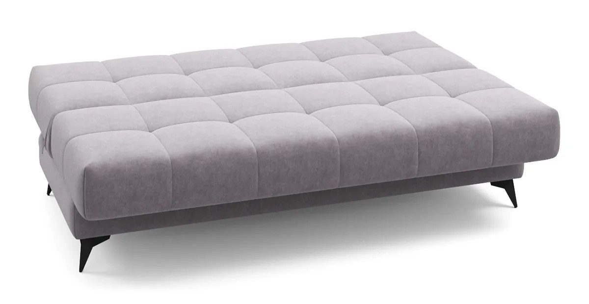 Представленный диван с механизмом Клик-кляк, являющимся усовершенствованной версией механизма Книжка, позволяет легким движением превратить компактный диван в просторное спальное место без зазоров посередине. Особенностью такого механизма является возможность трансформации дивана в три положения – для сидения, отдыха полулежа и сна.