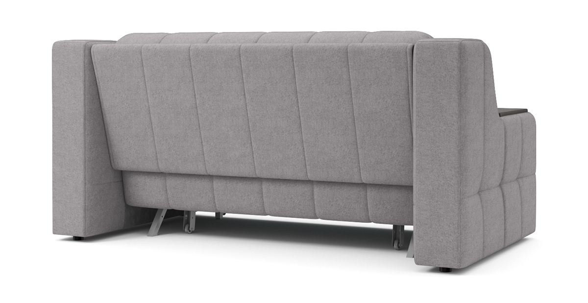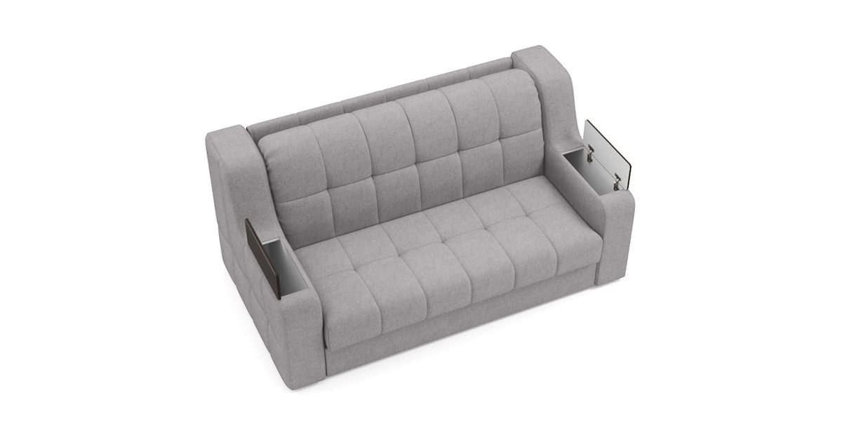Особенностью диванов с механизмом Аккордеон является просторное и ровное спальное место, несмотря на компактные размеры дивана в собранном положении. А также возможность встроить вместительный бельевой ящик. В данном механизме исключается возникновение скрипа благодаря сиденью дивана, которое выполнено на металлической сетке. Каждая из трех секций спального места имеет по 4 твердые точки опоры, которые исключают вероятность скрипа. Уникальная конструкция позволяет фиксировать сиденье почти в вертикальном положении, что обеспечивает самый комфортный доступ к бельевому ящику.