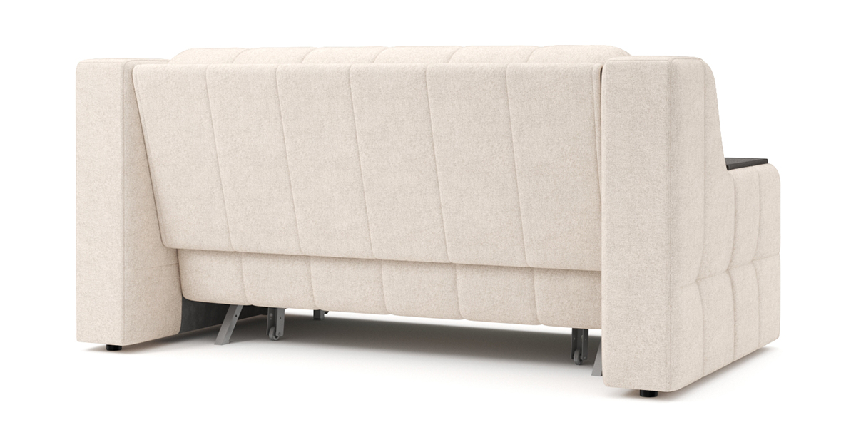 Особенностью диванов с механизмом Аккордеон является просторное и ровное спальное место, несмотря на компактные размеры дивана в собранном положении. А также возможность встроить вместительный бельевой ящик. В данном механизме исключается возникновение скрипа благодаря сиденью дивана, которое выполнено на металлической сетке. Каждая из трех секций спального места имеет по 4 твердые точки опоры, которые исключают вероятность скрипа. Уникальная конструкция позволяет фиксировать сиденье почти в вертикальном положении, что обеспечивает самый комфортный доступ к бельевому ящику.