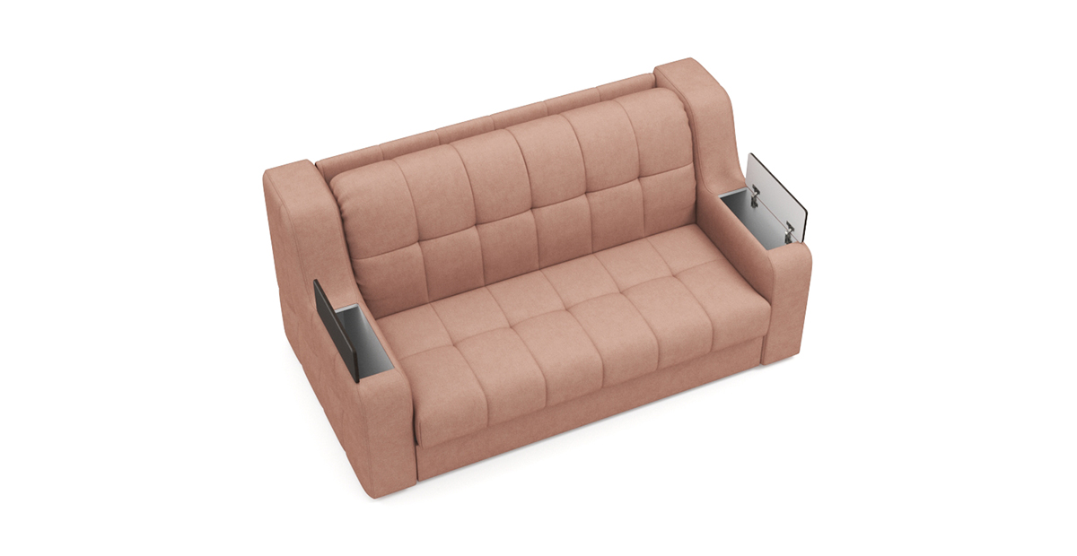 Особенностью диванов с механизмом Аккордеон является просторное и ровное спальное место, несмотря на компактные размеры дивана в собранном положении. А также возможность встроить вместительный бельевой ящик. В данном механизме исключается возникновение скрипа благодаря сиденью дивана, которое выполнено на металлической сетке. Каждая из трех секций спального места имеет по 4 твердые точки опоры, которые исключают вероятность скрипа. Уникальная конструкция позволяет фиксировать сиденье почти в вертикальном положении, что обеспечивает самый комфортный доступ к бельевому ящику.