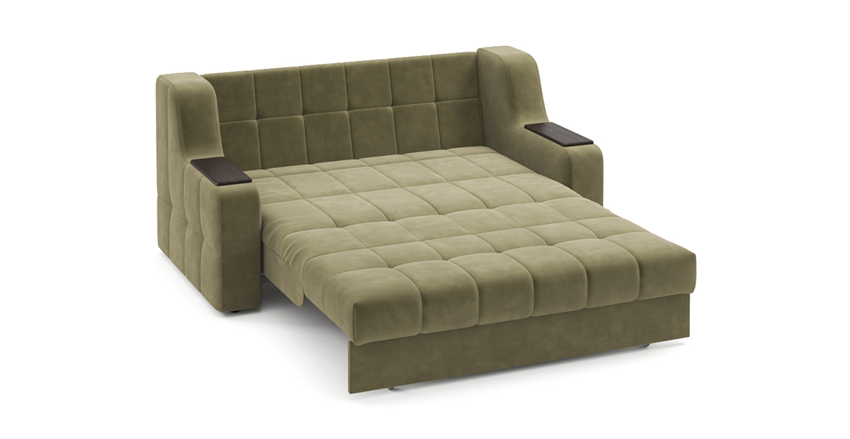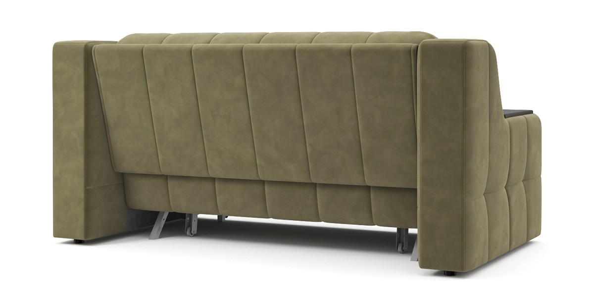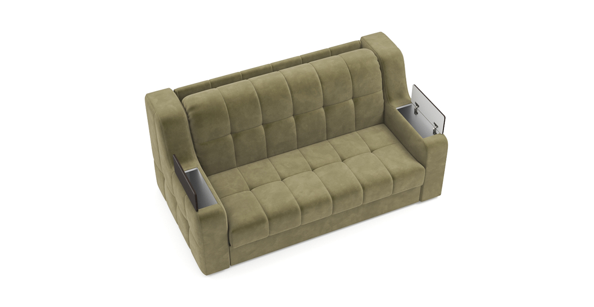 Особенностью диванов с механизмом Аккордеон является просторное и ровное спальное место, несмотря на компактные размеры дивана в собранном положении. А также возможность встроить вместительный бельевой ящик. В данном механизме исключается возникновение скрипа благодаря сиденью дивана, которое выполнено на металлической сетке. Каждая из трех секций спального места имеет по 4 твердые точки опоры, которые исключают вероятность скрипа. Уникальная конструкция позволяет фиксировать сиденье почти в вертикальном положении, что обеспечивает самый комфортный доступ к бельевому ящику.