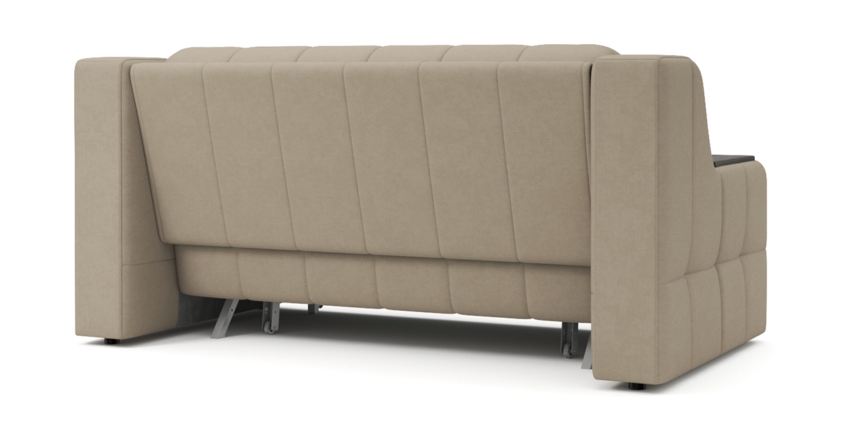 Особенностью диванов с механизмом Аккордеон является просторное и ровное спальное место, несмотря на компактные размеры дивана в собранном положении. А также возможность встроить вместительный бельевой ящик. В данном механизме исключается возникновение скрипа благодаря сиденью дивана, которое выполнено на металлической сетке. Каждая из трех секций спального места имеет по 4 твердые точки опоры, которые исключают вероятность скрипа. Уникальная конструкция позволяет фиксировать сиденье почти в вертикальном положении, что обеспечивает самый комфортный доступ к бельевому ящику.