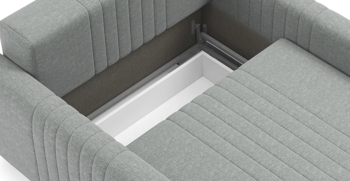 Спинка модели выполнена в основной обивочной ткани, что позволит вписать его в пространство-студию, легко разделив интерьер на функциональные зоны.