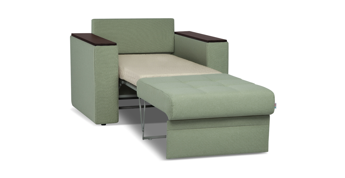 Механизм трансформации PUFF является новой уникальной разработкой, очень удобен и легок в раскладывании. Механизм переходит из положения «кресло» в положение «кровать» и обратно одним движением с минимальным усилием. Средняя часть прячется под сиденьем. Кресло-кровать раскладывается от стены, при этом занимая меньше места, чем модели с другими аналогичными механизмами трансформации.