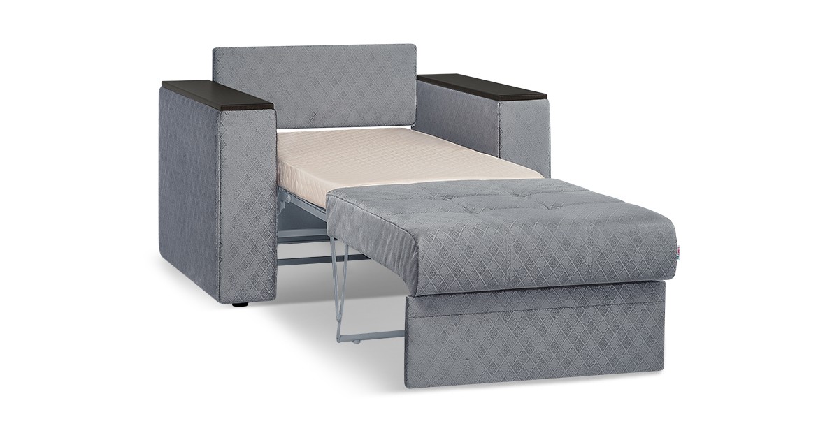 Механизм трансформации PUFF является новой уникальной разработкой, очень удобен и легок в раскладывании. Механизм переходит из положения «кресло» в положение «кровать» и обратно одним движением с минимальным усилием. Средняя часть прячется под сиденьем. Кресло-кровать раскладывается от стены, при этом занимая меньше места, чем модели с другими аналогичными механизмами трансформации.