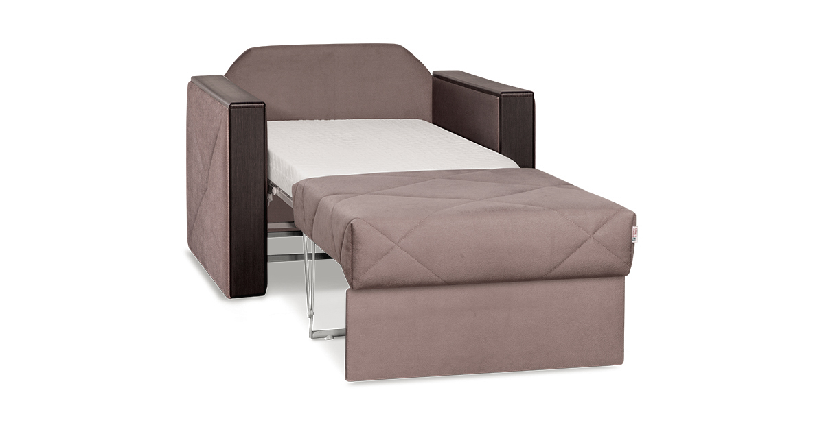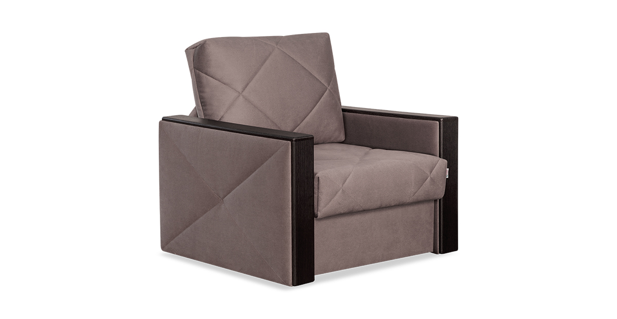 Компактное и функциональное кресло-кровать Мюнхен с деревянными накладками на подлокотниках – прекрасное дополнение к дивану из той же коллекции, а также оптимальное решение для небольшой квартиры. Благодаря современным технологиям кресло легко раскладывается, превращаясь в комфортную односпальную кровать. Стильная стежка на сидении и спинке не позволит образовываться складкам на обивке, а чехол на подушке можно снять, чтобы постирать.