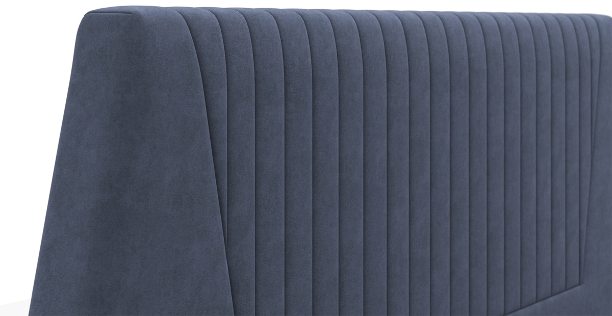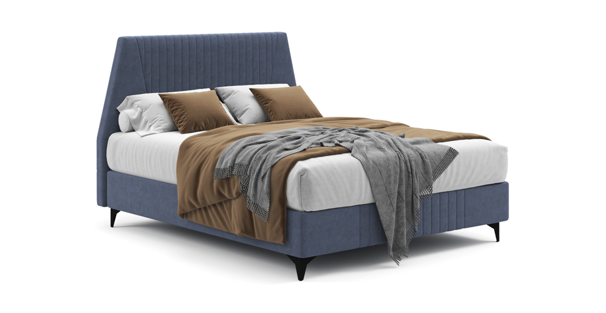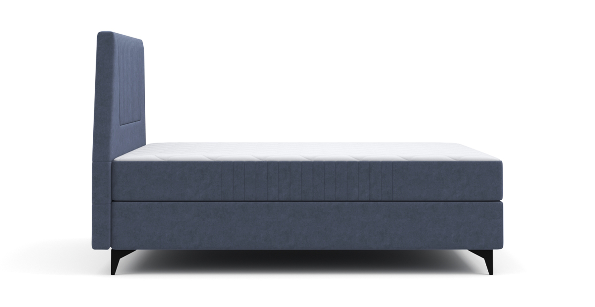 Ее особенности: высокое и мягкое изголовье со стильной стёжкой, интегрированный матрас толщиной 23,5 см с настраиваемой жесткостью.