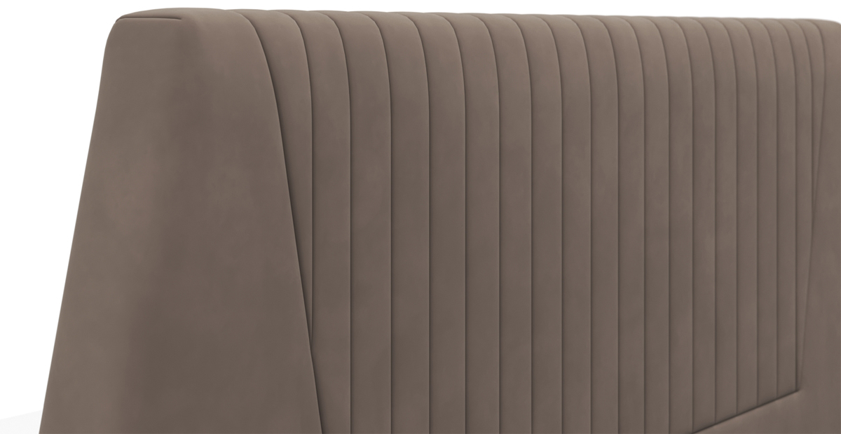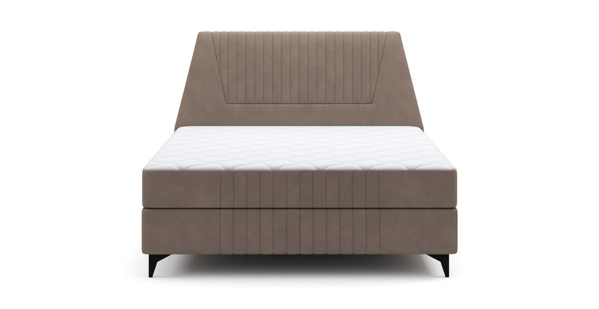 Ее особенности: высокое и мягкое изголовье со стильной стёжкой, интегрированный матрас толщиной 26,5 см с настраиваемой жесткостью.