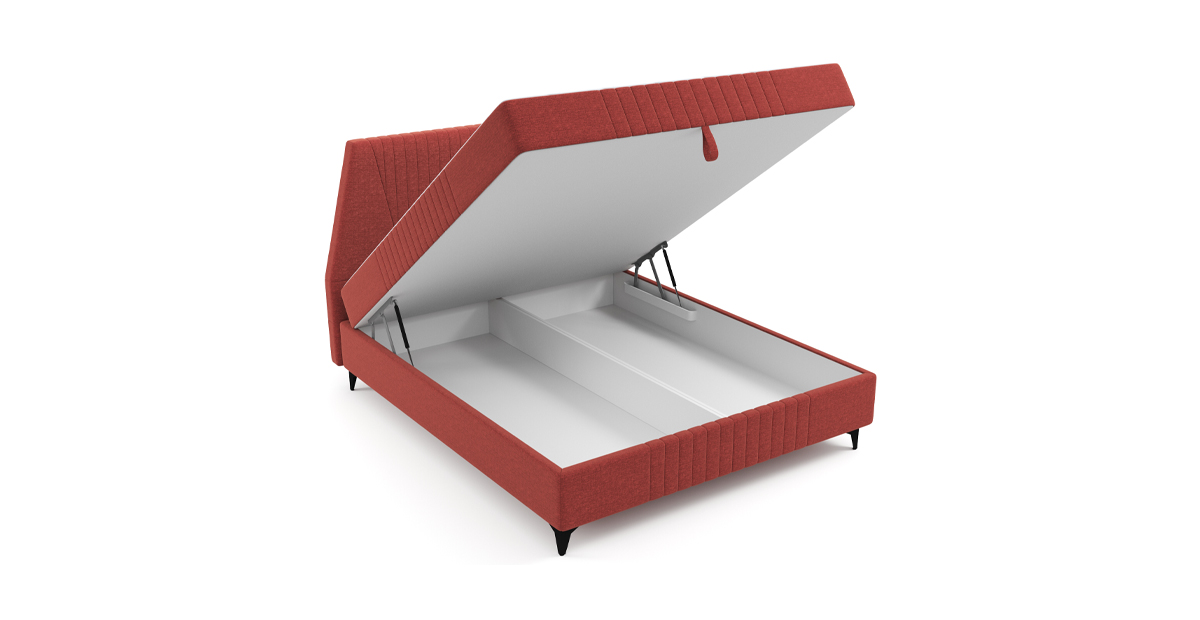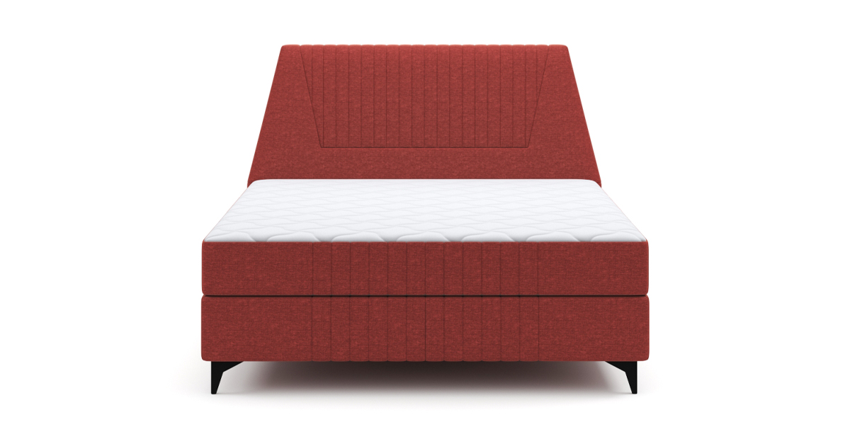 Ее особенности: высокое и мягкое изголовье со стильной стёжкой, интегрированный матрас толщиной 23,5 см с настраиваемой жесткостью.
