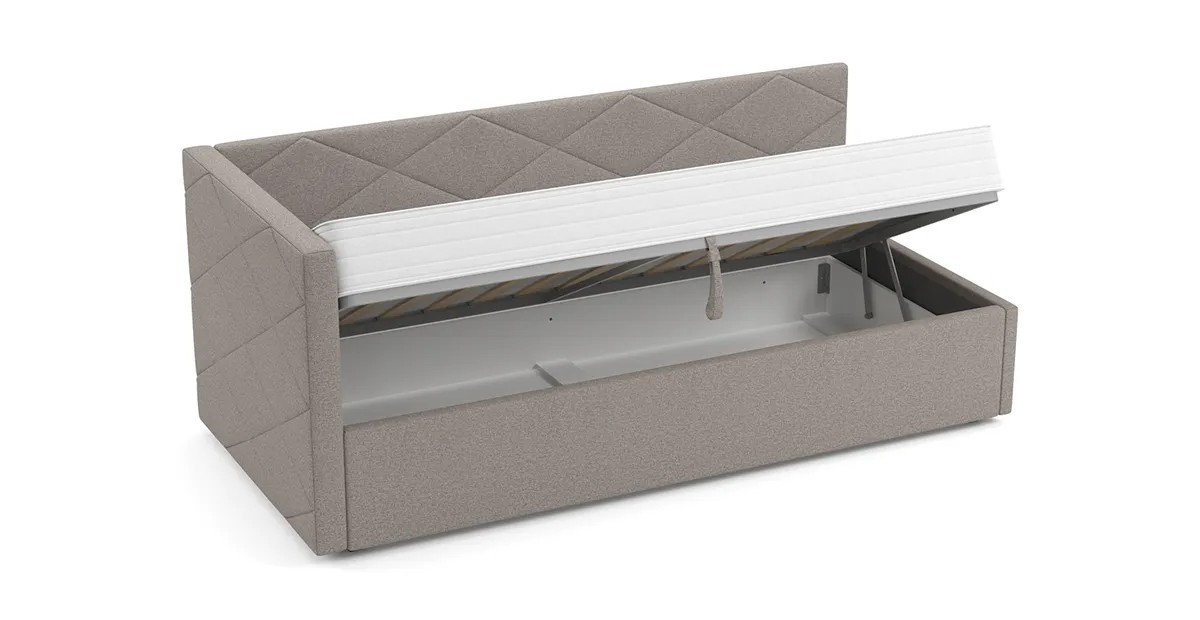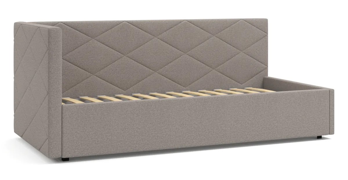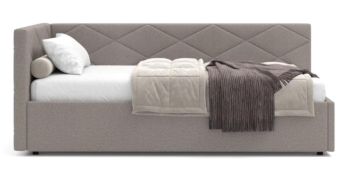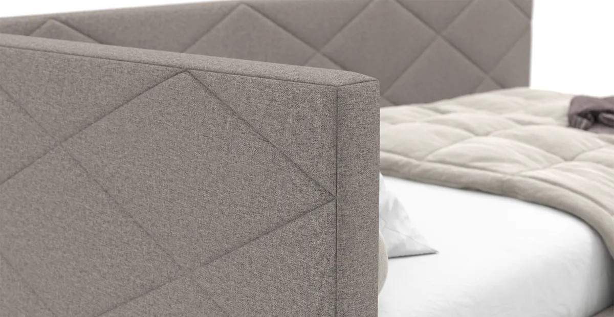 Кровать Эстель с высокими мягкими изголовьем и спинкой – это уютное спальное место. Декоративная геометрическая стёжка на спинке и изголовье – стильная и универсальная – идеально подойдёт к любому интерьеру.