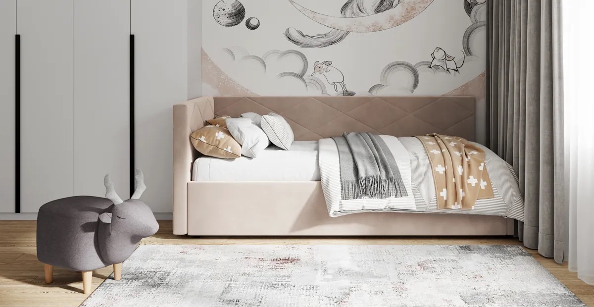 Съёмный чехол на царге и спинке облегчает уход за кроватью.