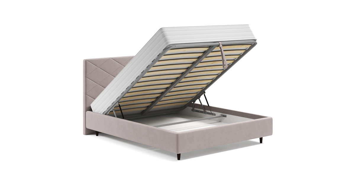 Механизм обеспечивает подъем основания спального места на 60 градусов для максимально комфортного доступа к бельевому ящику. В подъемных механизмах используются уникальные подшипники трения из композитного материала, обеспечивающие легкое и беззвучное поднятие спального места для комфортного доступа в бельевой ящик. В стандартном варианте доступен один бельевой ящик, как дополнение можно добавить вторую секцию.