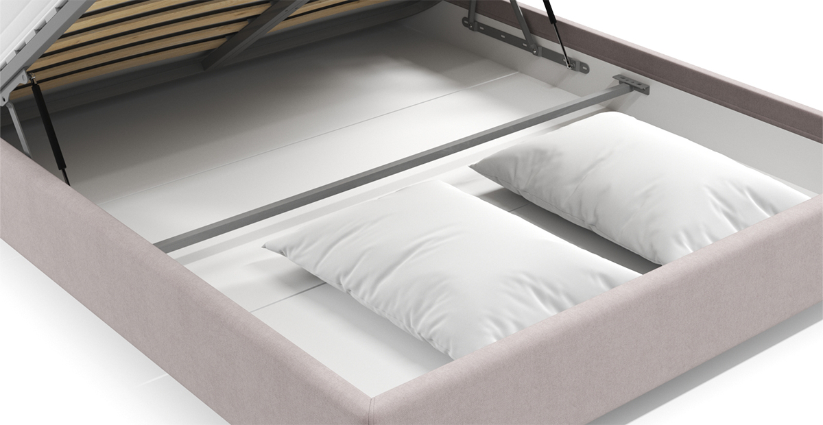 Механизм обеспечивает подъем основания спального места на 60 градусов для максимально комфортного доступа к бельевому ящику. В подъемных механизмах используются уникальные подшипники трения из композитного материала, обеспечивающие легкое и беззвучное поднятие спального места для комфортного доступа в бельевой ящик. В стандартном варианте доступен один бельевой ящик, как дополнение можно добавить вторую секцию.