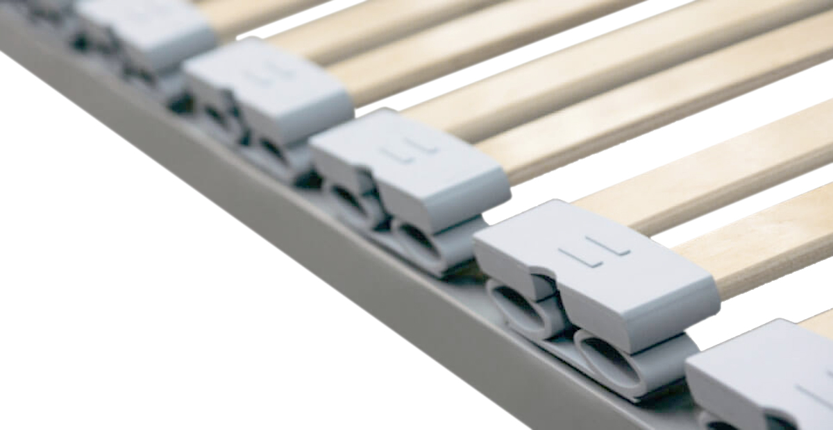 Латодержатели изготовлены из полипропилена. Это ударопрочный, гибкий и устойчивый к перепаду температур материал. Латодержатель крепится поверх металлической рамы накладным способом, что обеспечивает распределение нагрузки не только на латы, но и на металлокаркас и увеличивает срок службы латодержателя и лат даже при повышенных динамических нагрузках. Основание Медио ЛЮКС подходит для любого вида матрасов.