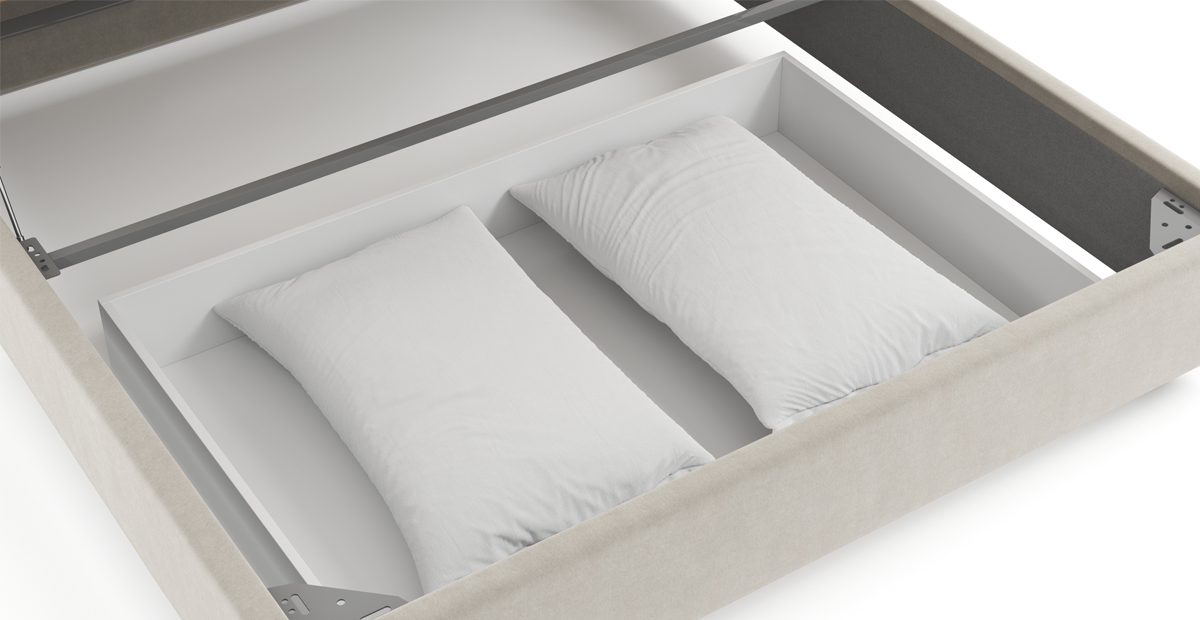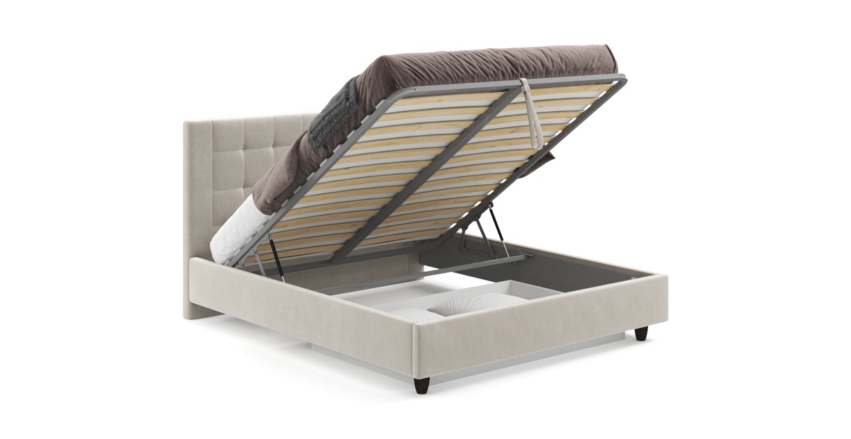 Механизм обеспечивает подъем основания спального места на 60 градусов для максимально комфортного доступа к бельевому ящику. В подъемных механизмах используются уникальные подшипники трения из композитного материала, обеспечивающие легкое и беззвучное поднятие спального места для комфортного доступа в бельевой ящик. В стандартном варианте доступен один бельевой ящик, как дополнение можно добавить вторую секцию.