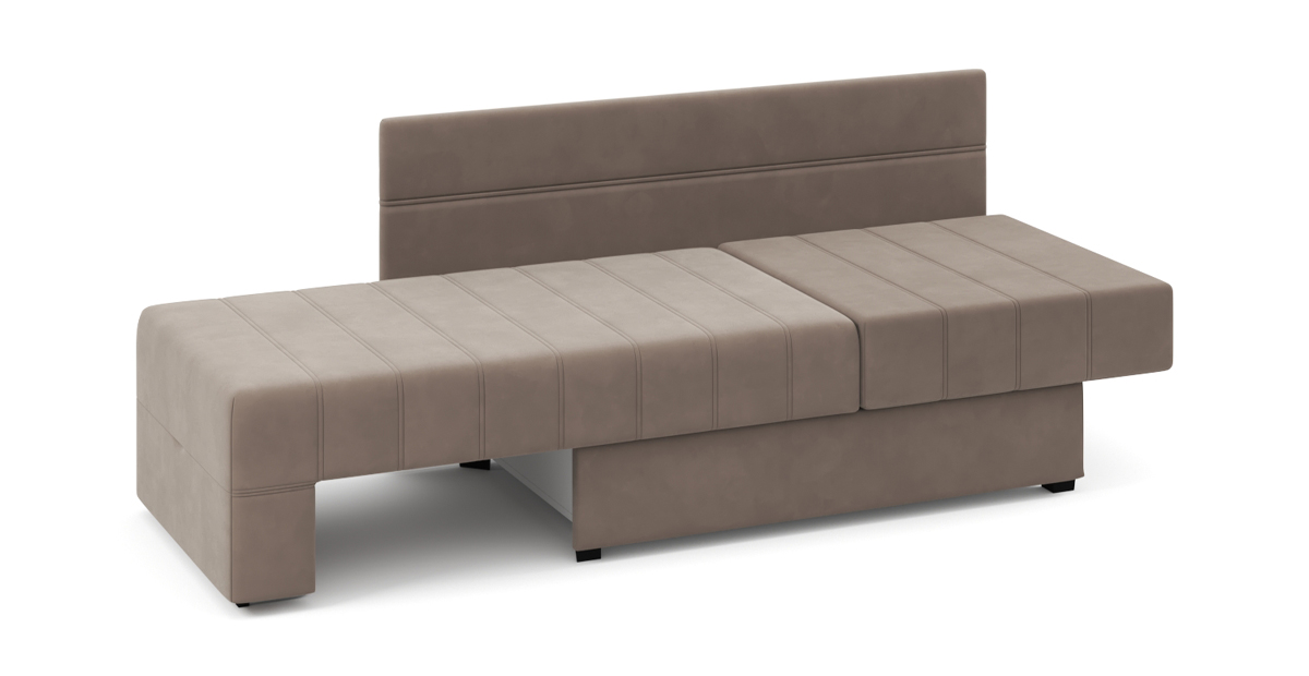 Очень классная кушетка с крепким металлическим каркасом. Смотрится современно, купил себе на кухню. При необходимости можно ее разложить, спальное место получается для взрослого человека. Можно спокойно уложить гостя спать. Рекомендую всем.