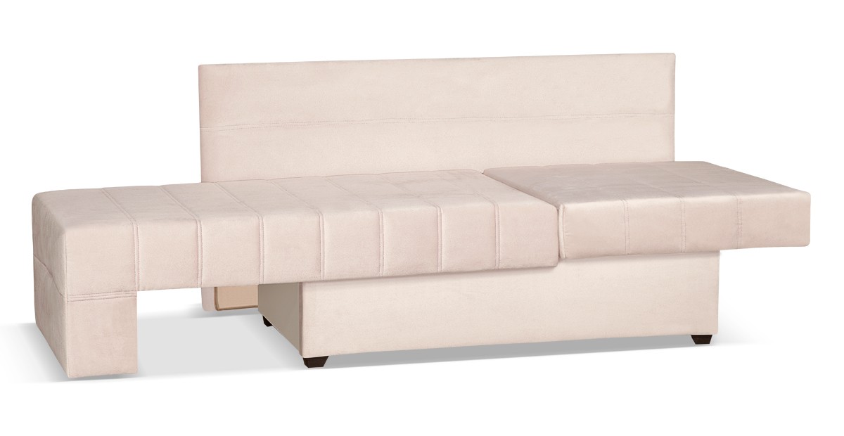 Очень классная кушетка с крепким металлическим каркасом. Смотрится современно, купил себе на кухню. При необходимости можно ее разложить, спальное место получается для взрослого человека. Можно спокойно уложить гостя спать. Рекомендую всем.