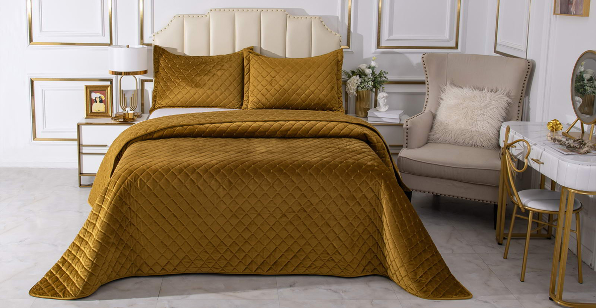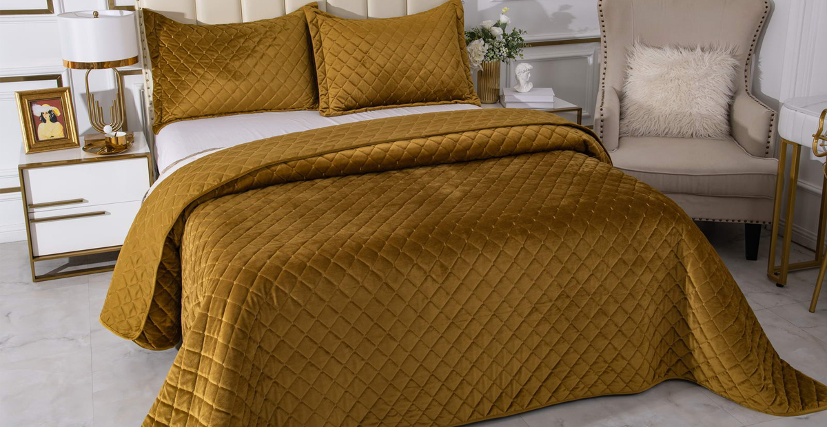 Покрывало Натаниэль – красивое велюровое покрывало. Благородный цвет, мягкая фактура и умеренный блеск придадут интерьеру роскоши. Оно долго будет держать форму, не растянется и не полиняет. Поэтому станет хорошей покупкой для дома или отличным подарком.