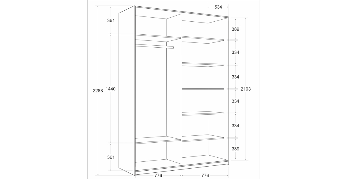 Очень классный шкаф. Двери двигаются плавно и бесшумно. Внутри предусмотрено все нужное для вещей. Вместилось все. Приобрела к шкафу модуль с ящиками для мелочей. Очень довольна.