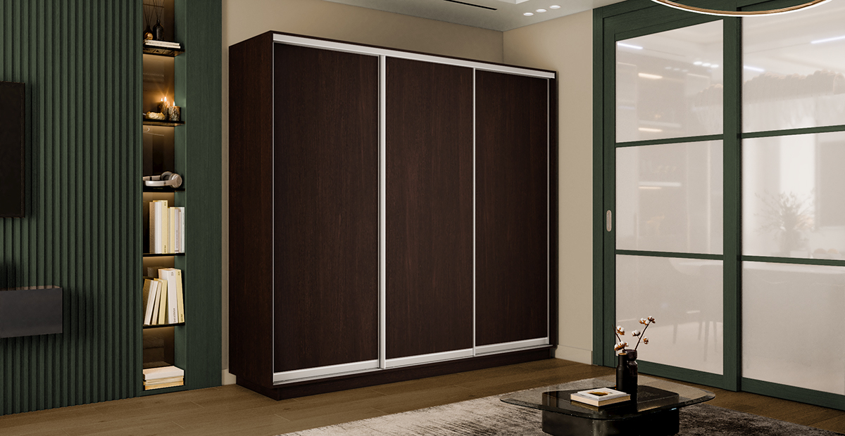 Шкаф-купе Гост – образец практичности и элегантности. Он вместительный, удобный и долговечный. Дверцы по надёжным направляющим двигаются плавно. Защитные шлегели на краю профиля уберегут содержимое от пыли. Сам алюминиевый профиль анодирован – защищён от коррозии. Цоколь позволяет поставить шкаф вплотную к стене, что хорошо смотрится и экономит место.