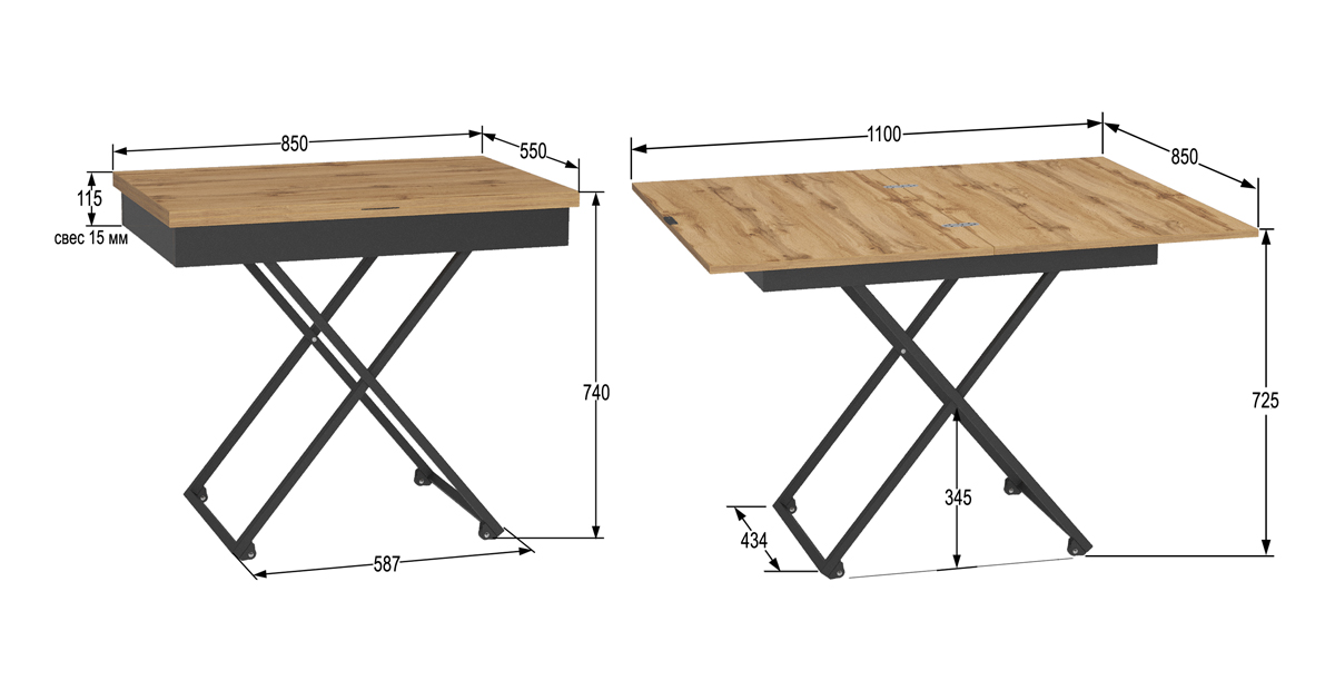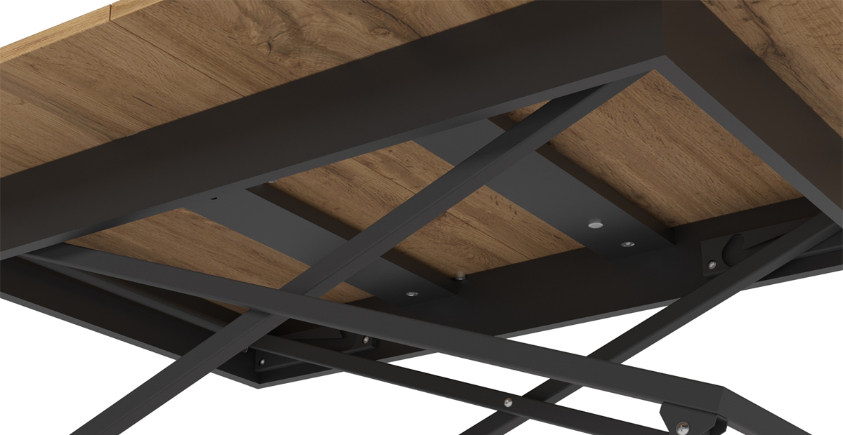 Универсальный стол-трансформер Берси в стиле лофт – находка для современного интерьера! Он легко меняет высоту и площадь! Четыре положения трансформации делают стол максимально практичным. Меняйте высоту от журнального до обеденного, а когда потребуется дополнительная поверхность, просто разложите столешницу.