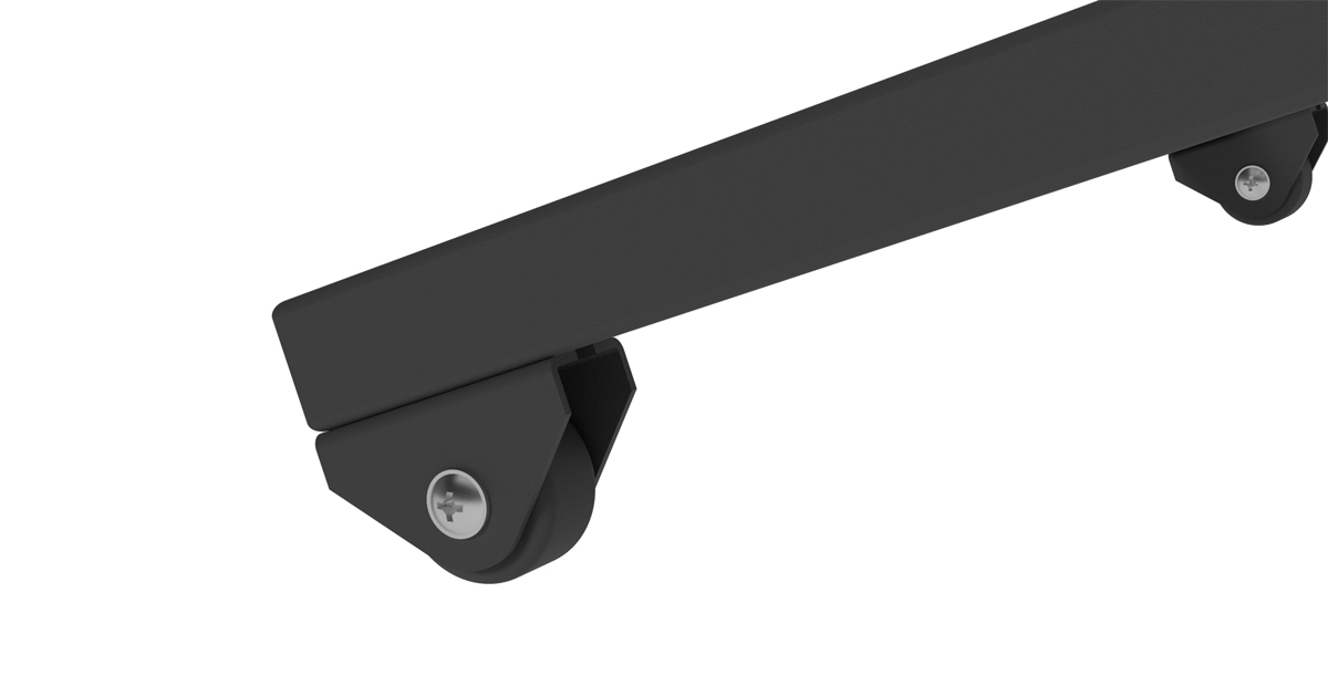 Прорезиненные роликовые опоры не поцарапают напольное покрытие даже при частой трансформации и перемещении.