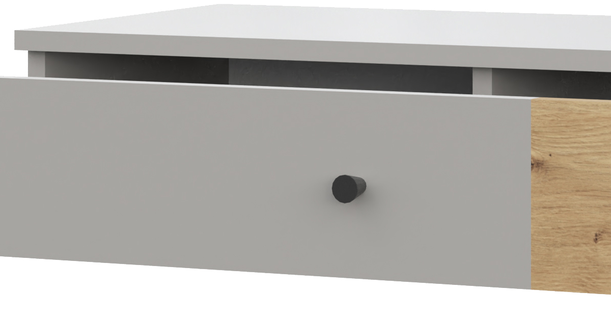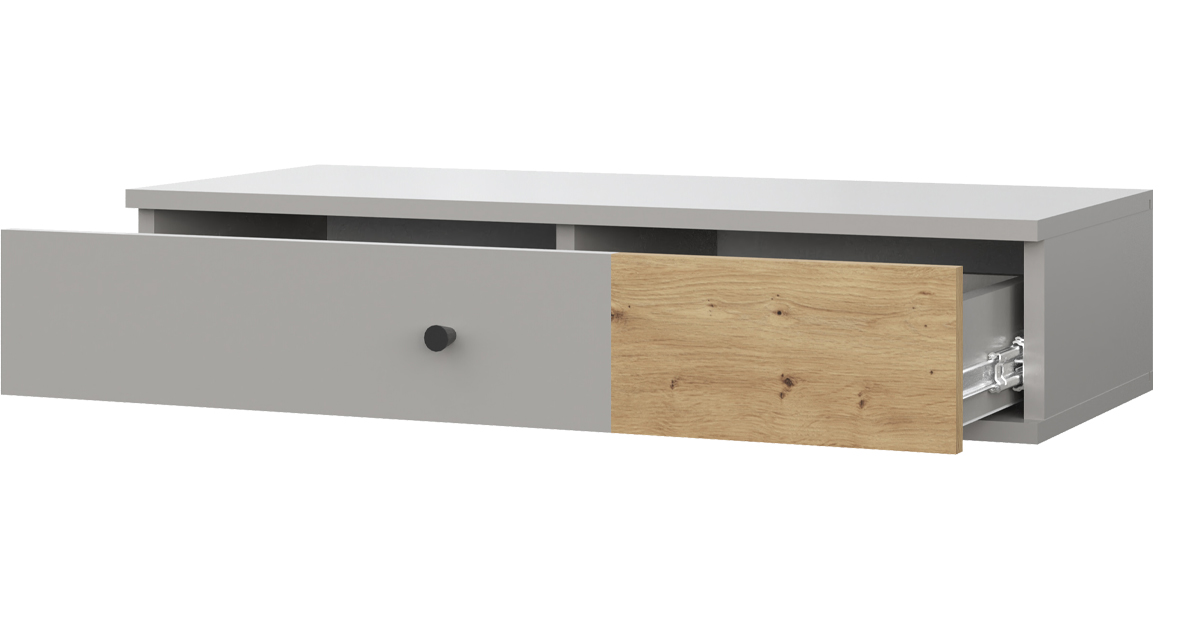 Свой уголок в спальне для бьюти-процедур – мечта любой девушки. Навесной туалетный столик Модерн New с вместительным ящиком поможет обустроить его стильно и удобно. Эффектное сочетание холодного серого и тёплого золотого с фактурой дуба на вставках обеспечивает привлекательный вид. Вместе с зеркалом из этой же коллекции, он может организовать и функциональную зону в прихожей.