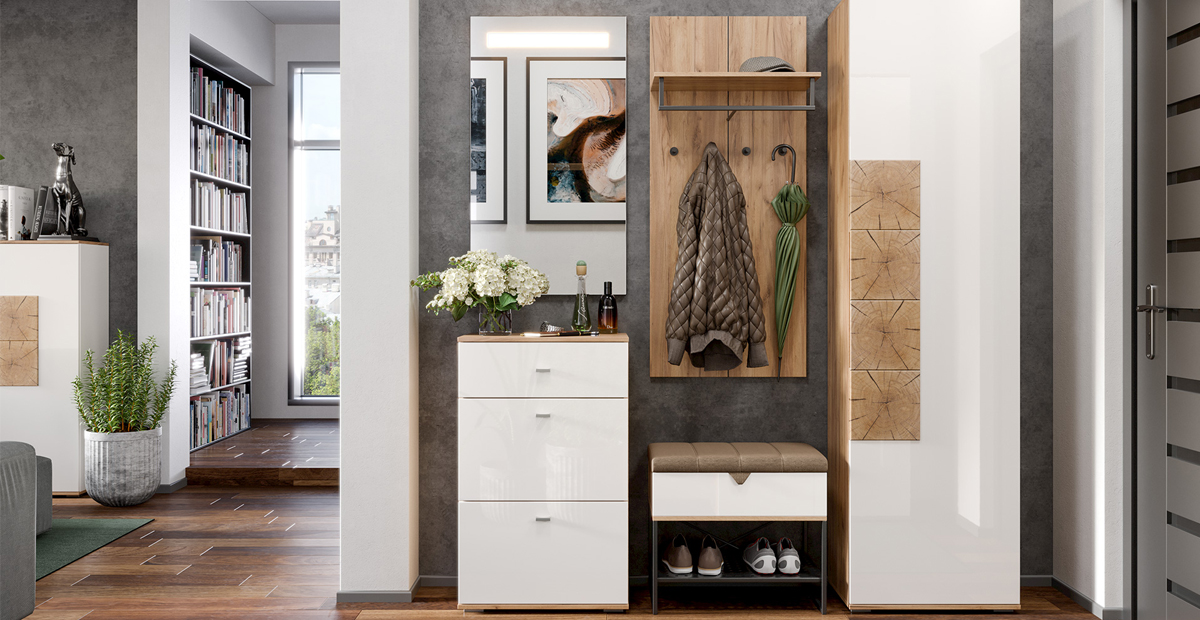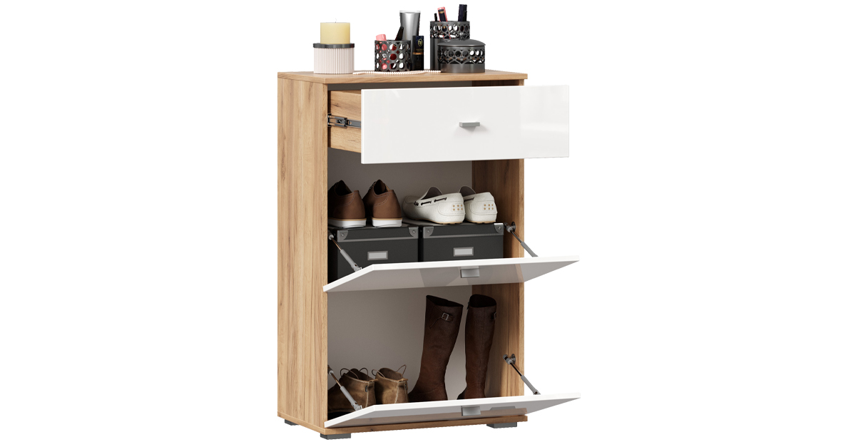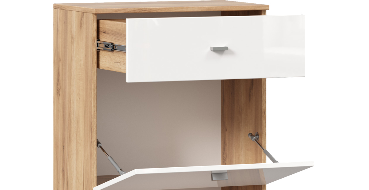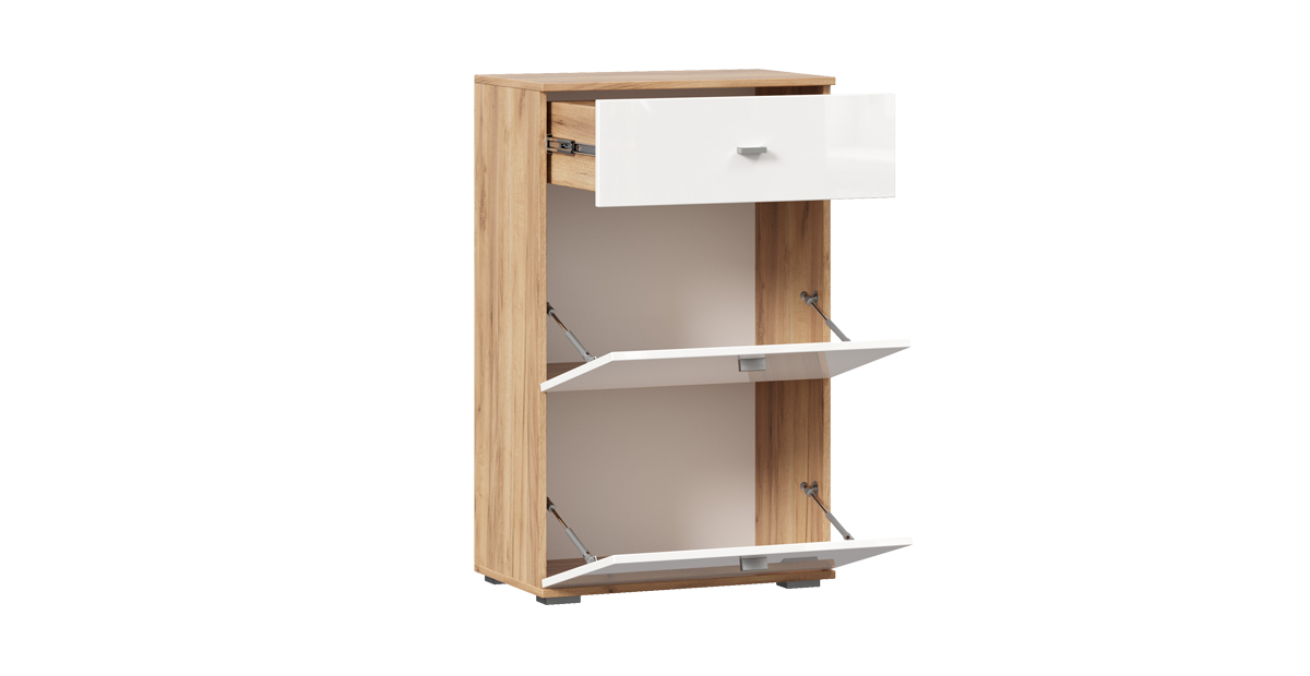 Тумба с ящиком для мелочей и откидными дверцами поможет разместить необходимые в прихожей вещи. Ниши могут служить в качестве места временного хранения обуви. Глянцевые фасады и удобные металлические ручки делают тумбу лаконичным, удобным и стильным предметом мебели. Вся коллекция BELLAGIO – лаконичная и стильная мебель, которая привнесёт в дом нотку природы и создаст современный и ненавязчивый интерьер.