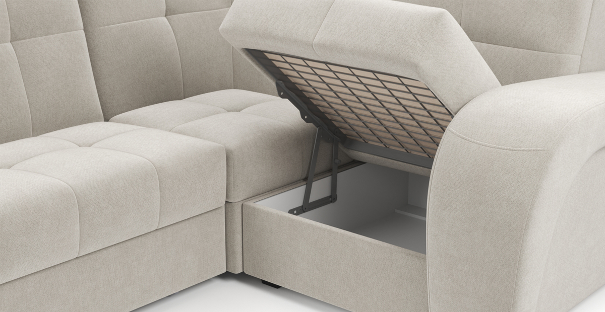Механизм трансформации обеспечивает легкое складывание и раскладывание дивана с ровным спальным местом. Специальная система на механизме препятствует появлению скрипов в процессе эксплуатации, что создает максимальный комфорт для самых требовательных покупателей.