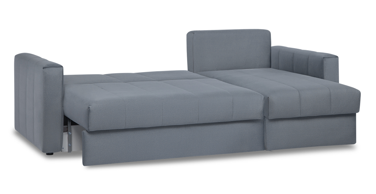 Хьюстон – очень функциональный диван. Элегантные формы впишутся в любой интерьер. Металлическая основа делает диван надёжным и долговечным. Уникальность модели – в оттоманке: выдвижной механизм увеличивает полезную площадь дивана, чтобы разместить большую компанию. Задняя сторона спинки дивана выполнена из основной ткани со стёжкой, поэтому Хьюстон может красиво разделить комнату на функциональные зоны. За эргономику дивана отвечают выверенные пропорции и ортопедический независимый пружинный блок, благодаря чему каждую ночь сон будет здоровым и комфортным. Под сидением дивана и в оттоманке расположились ящики для хранения постельных принадлежностей.