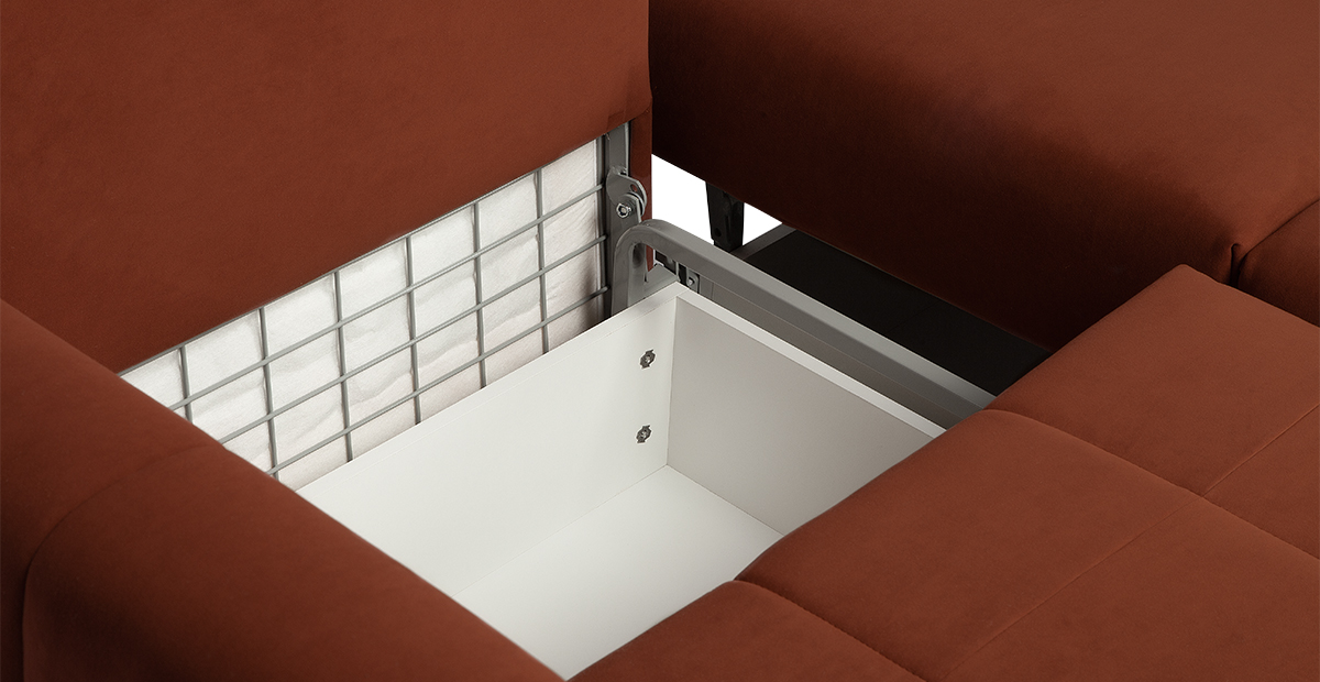 Хьюстон – очень функциональный диван. Элегантные формы впишутся в любой интерьер. Металлическая основа делает диван надёжным и долговечным. Уникальность модели – в оттоманке: выдвижной механизм увеличивает полезную площадь дивана, чтобы разместить большую компанию. Задняя сторона спинки дивана выполнена из основной ткани со стёжкой, поэтому Хьюстон может красиво разделить комнату на функциональные зоны. За эргономику дивана отвечают выверенные пропорции и ортопедический независимый пружинный блок, благодаря чему каждую ночь сон будет здоровым и комфортным. Под сидением дивана и в оттоманке расположились ящики для хранения постельных принадлежностей.