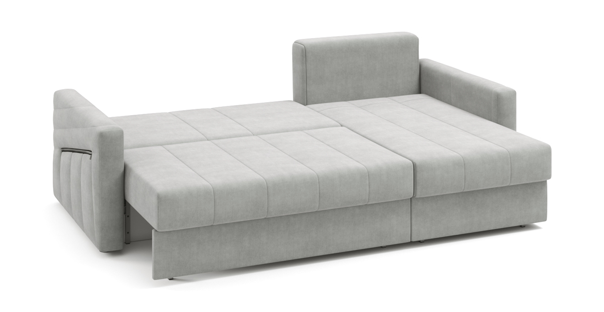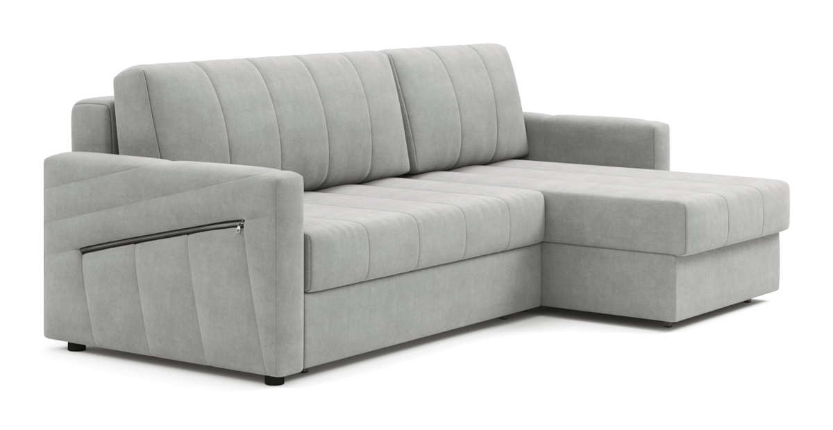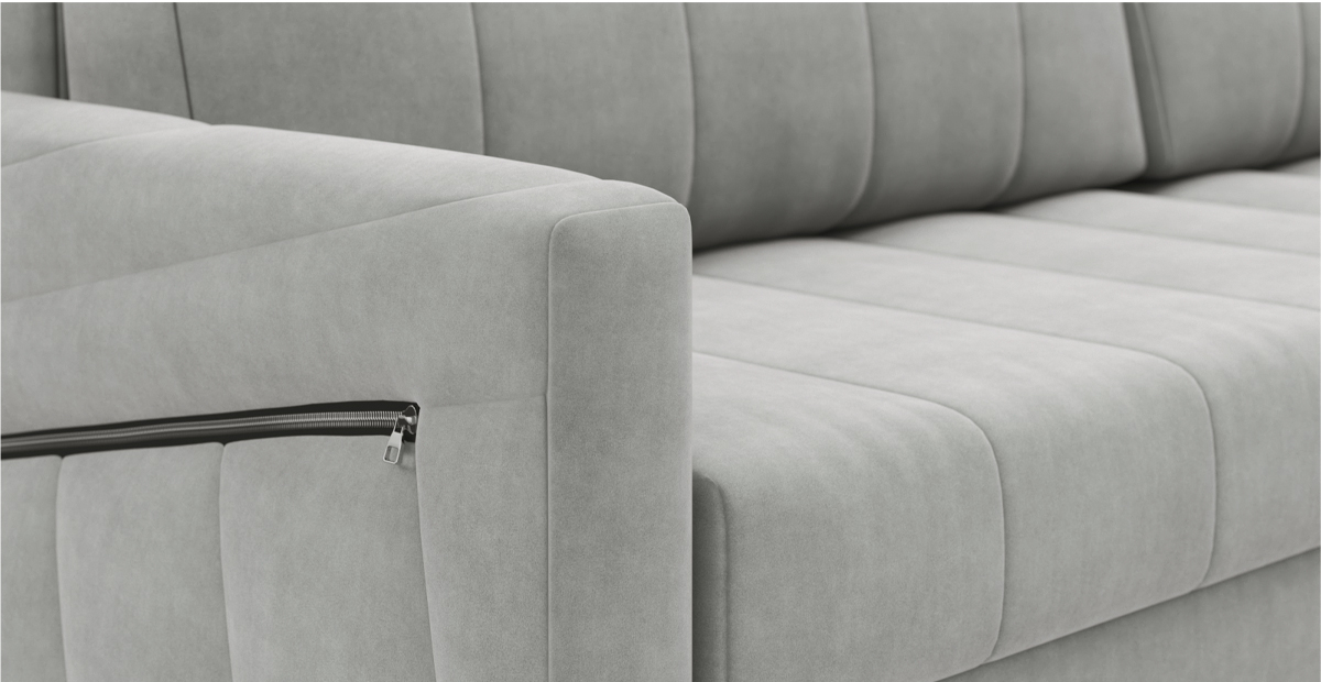 Хьюстон – очень функциональный диван. Элегантные формы впишутся в любой интерьер. Металлическая основа делает диван надёжным и долговечным. Уникальность модели – в оттоманке: выдвижной механизм увеличивает полезную площадь дивана, чтобы разместить большую компанию. Задняя сторона спинки дивана выполнена из основной ткани со стёжкой, поэтому Хьюстон может красиво разделить комнату на функциональные зоны. За эргономику дивана отвечают выверенные пропорции и ортопедический независимый пружинный блок, благодаря чему каждую ночь сон будет здоровым и комфортным. Под сидением дивана и в оттоманке расположились ящики для хранения постельных принадлежностей. Карман на молнии в подлокотнике поможет не потерять пульт или хранить под рукой любимые журналы.