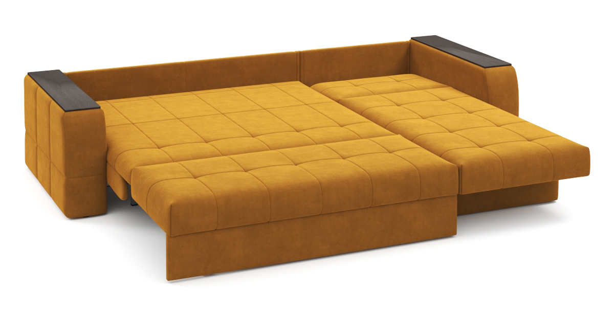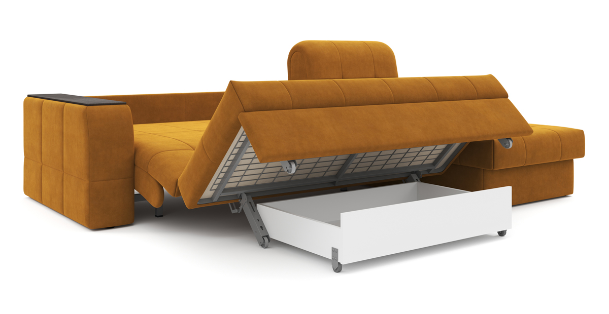 Простой и надёжный механизм трансформации легко превращает диван в просторную двуспальную кровать без стыков. Ортопедические ламели обеспечивают правильную поддержку матраса и выдерживают большие нагрузки, опираясь на металлическую раму. При этом система «антискрип» обеспечивает акустический комфорт для спокойного сна всю ночь.